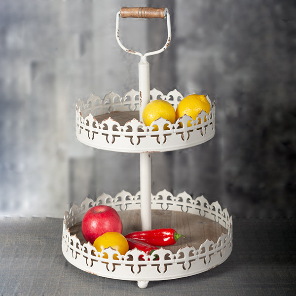 Rustic looking tiered wooden tray with cut-out metal anchor design. Nautical/Cottage style.