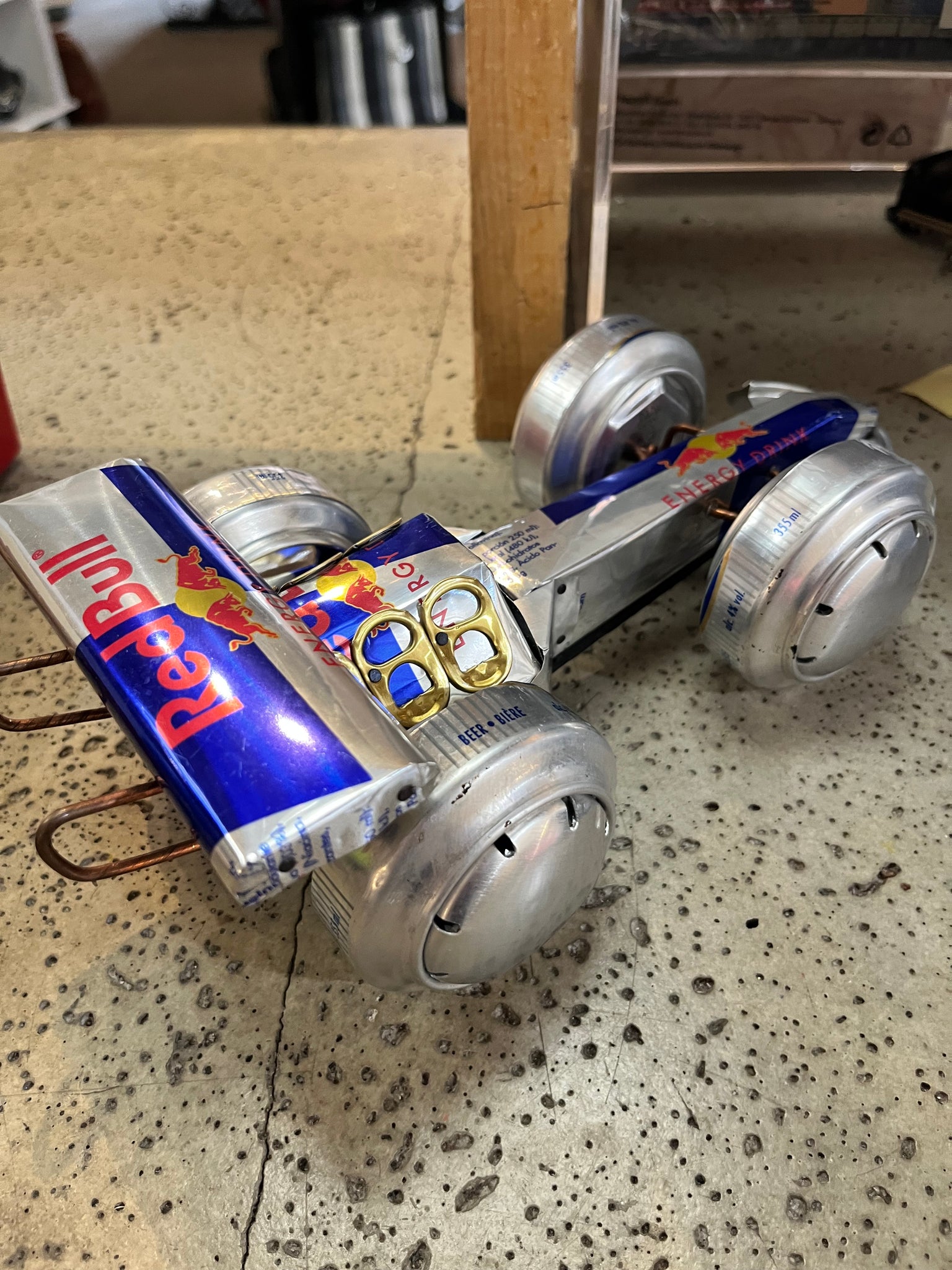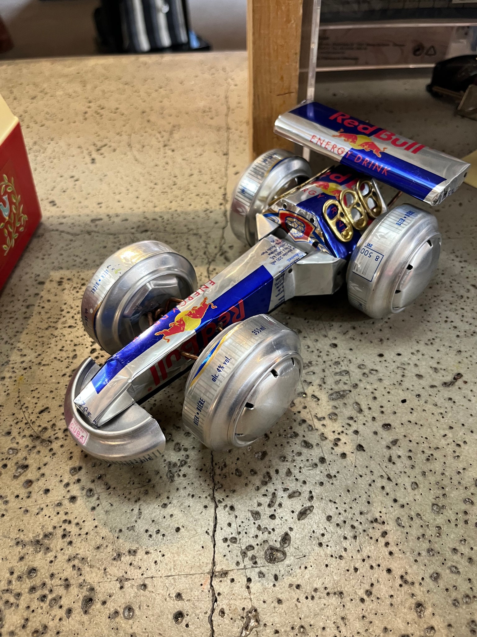 Discover the charm of our Unique Pop-Can Cars, available in two playful styles: the Sprite Volkswagen Bug and the Red Bull F1 car. Each hand-crafted piece is truly one-of-a-kind, making them a delightful addition for any collector who loves quirky, fun treasures. Add a splash of creativity and nostalgia to your collection with these miniature marvels!  Red Bull = 10"/Bug = 6"