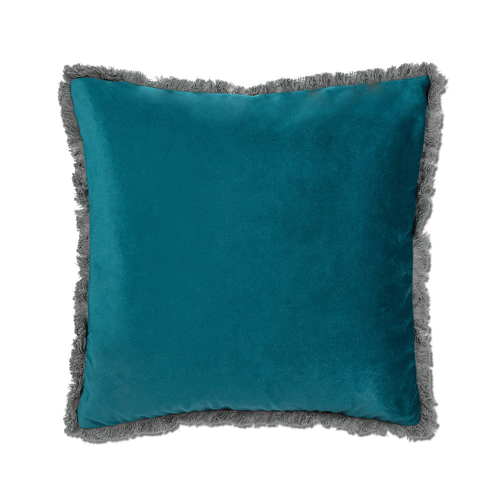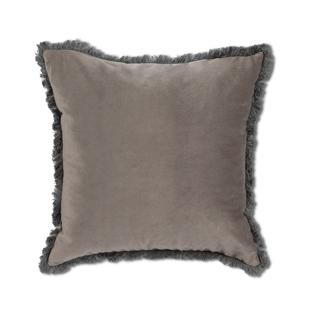 Add that luxurious look and feel to any piece of furniture with this Velvet Pillow with Fringe. Accented with a playful grey fringe, this feather-filled pillow brings warmth and style to any room. Also available in other colours.