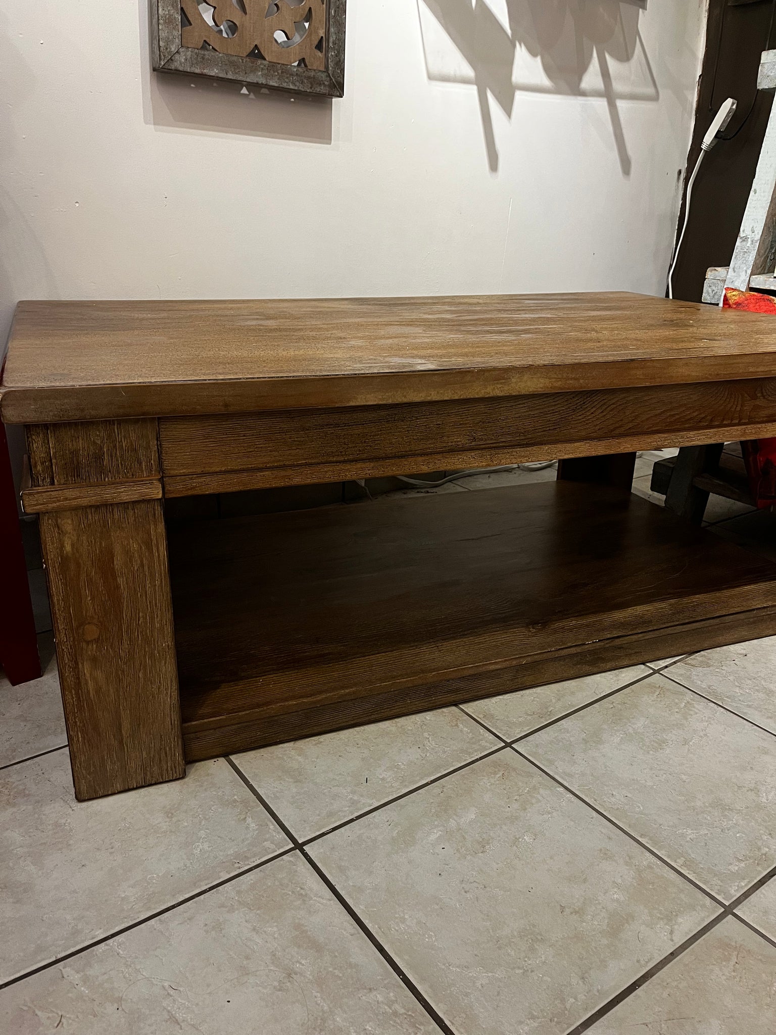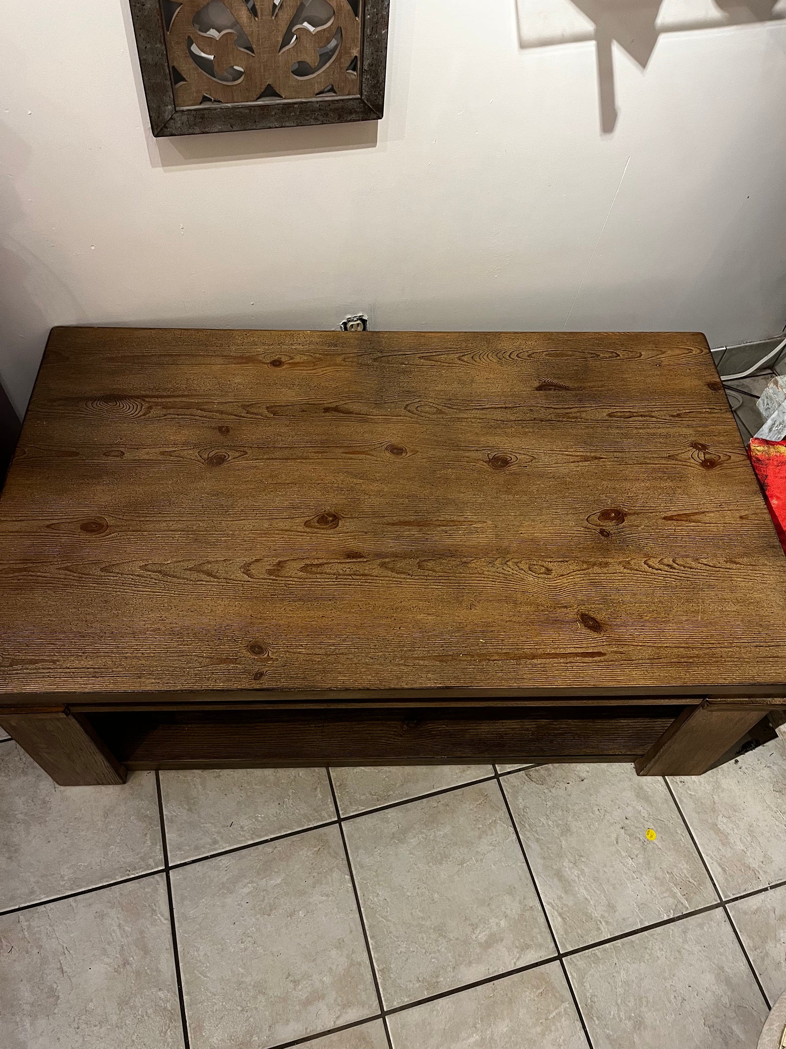 Add a touch of charm to your living space with this Wooden Coffee Table by Ashley Furniture. Crafted from quality wood featuring a beautiful wood grain design, it effortlessly blends with any decorating style. Whether you're hosting friends or enjoying a cozy night in, this sturdy and stylish coffee table is ready to be the centerpiece of your room!