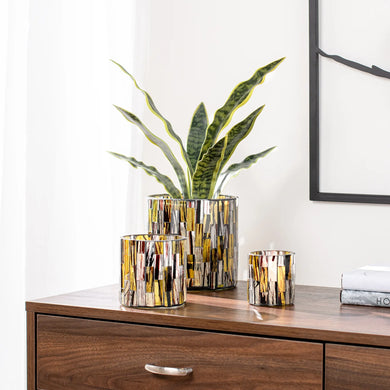 • Yellow Mosaic Glass Planters (Only 1 Large Left!)