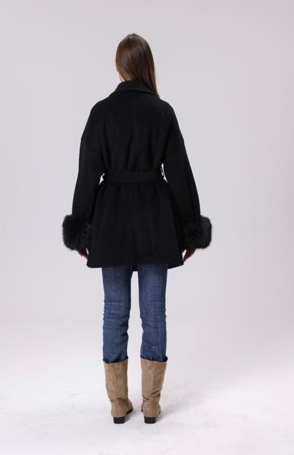 Belted Coat with Faux Fur Cuff (2 Colors)