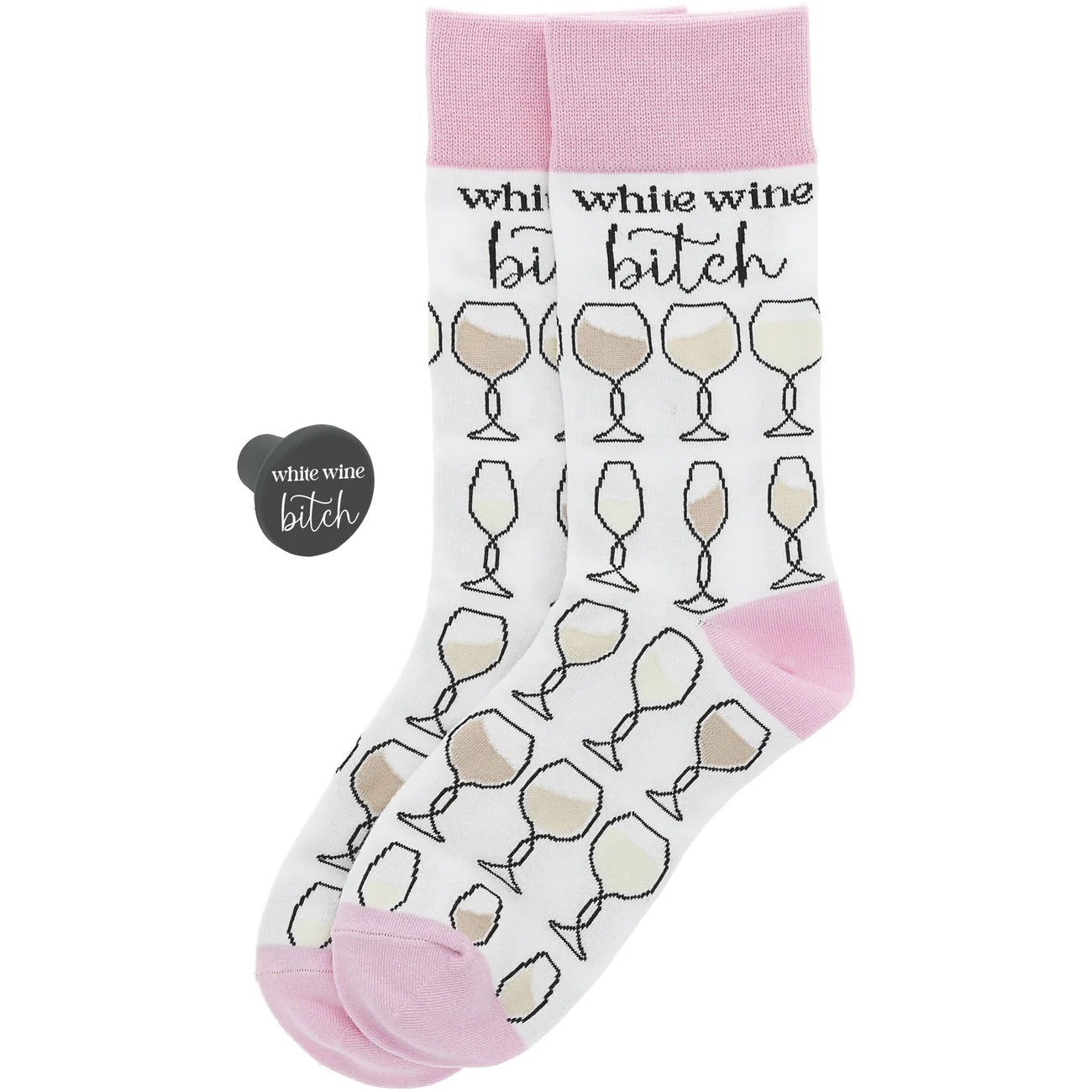 - PREMIUM QUALITY: These ladies’ crew socks are crafted from a high-quality, comfortable blend of 70% cotton, 28% polyester, and 2% elastane. This ensures a breathable, stretchy fit, making them perfect for daily wear. The set also includes a matching food-grade silicone bottle stopper, which is both functional and adds a playful element to any wine lover’s collection.
