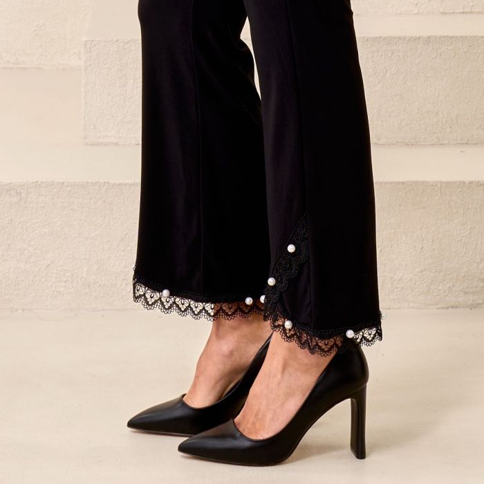 Chic with a statement twist! This slim stretch pull-on pant blends bold flair with intricate details for an effortlessly stylish look.