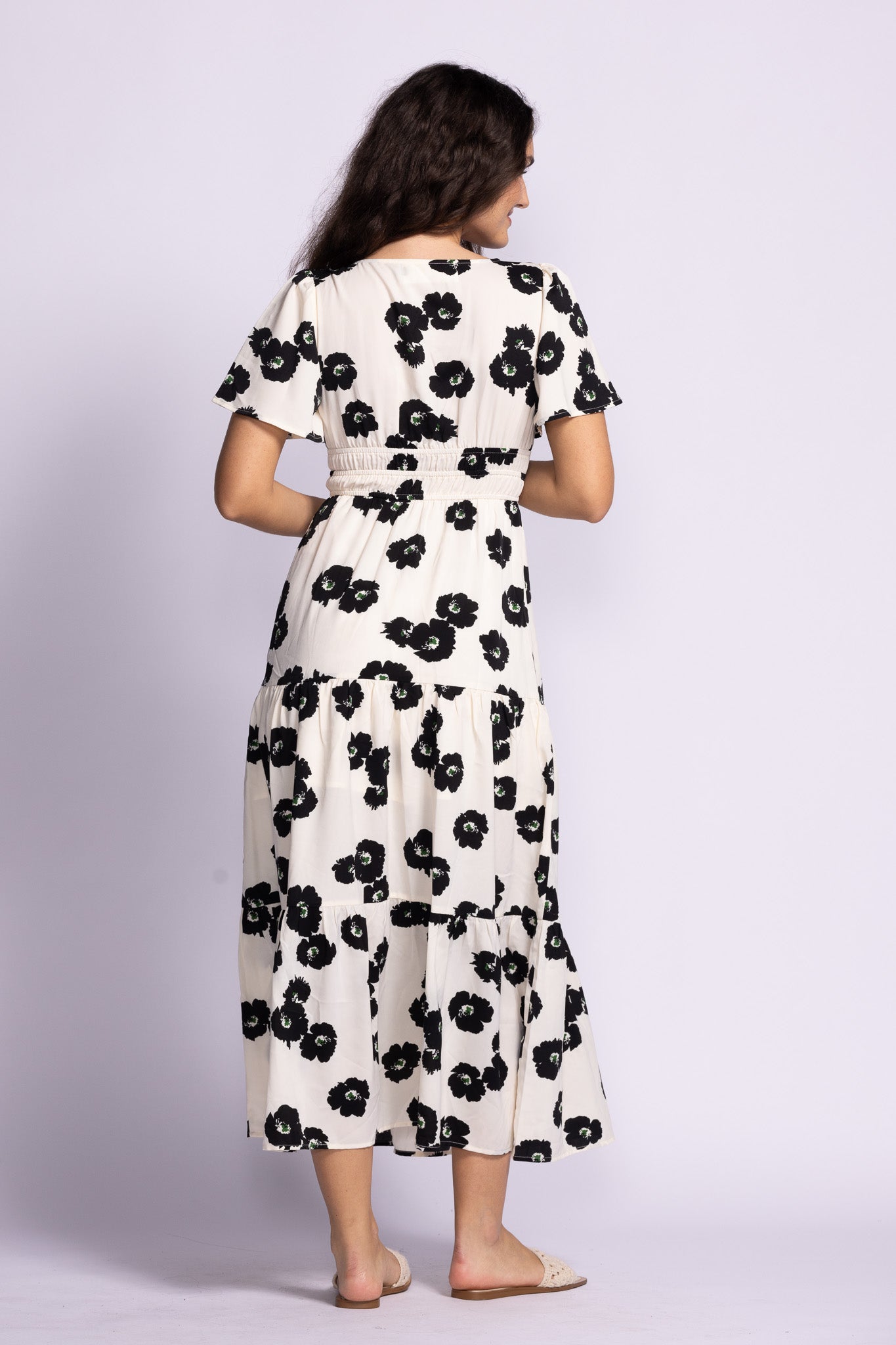 This gorgeous dress features a beautiful silhouette and style that is very flattering to most figures. The lovely black and white floral print adds a touch of elegance, while the swings and layers provide a playful and flirty vibe. Plus, the elastic waist adds definition for a perfect fit. Stay stylish and comfortable all day long! Perfect for vacation or that summer wedding. By Pink Martini. 100% polyester