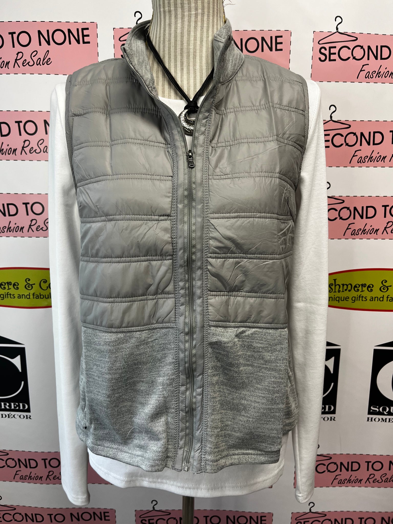 Elevate any outfit with this super stylish Quilted Zip-Front Vest! Featuring a puffer-jacket fabric on top and a cozy knit bottom and back, it hugs your shape perfectly. With 2 handy front pockets, it’s ideal for stashing essentials while on the go. Whether you’re cozy indoors or stepping out for a breezy day, this lightweight travel-friendly vest adds a fabulous touch to any look. Vests have never looked so good! Kleio brand. Available in Black & Light Grey.