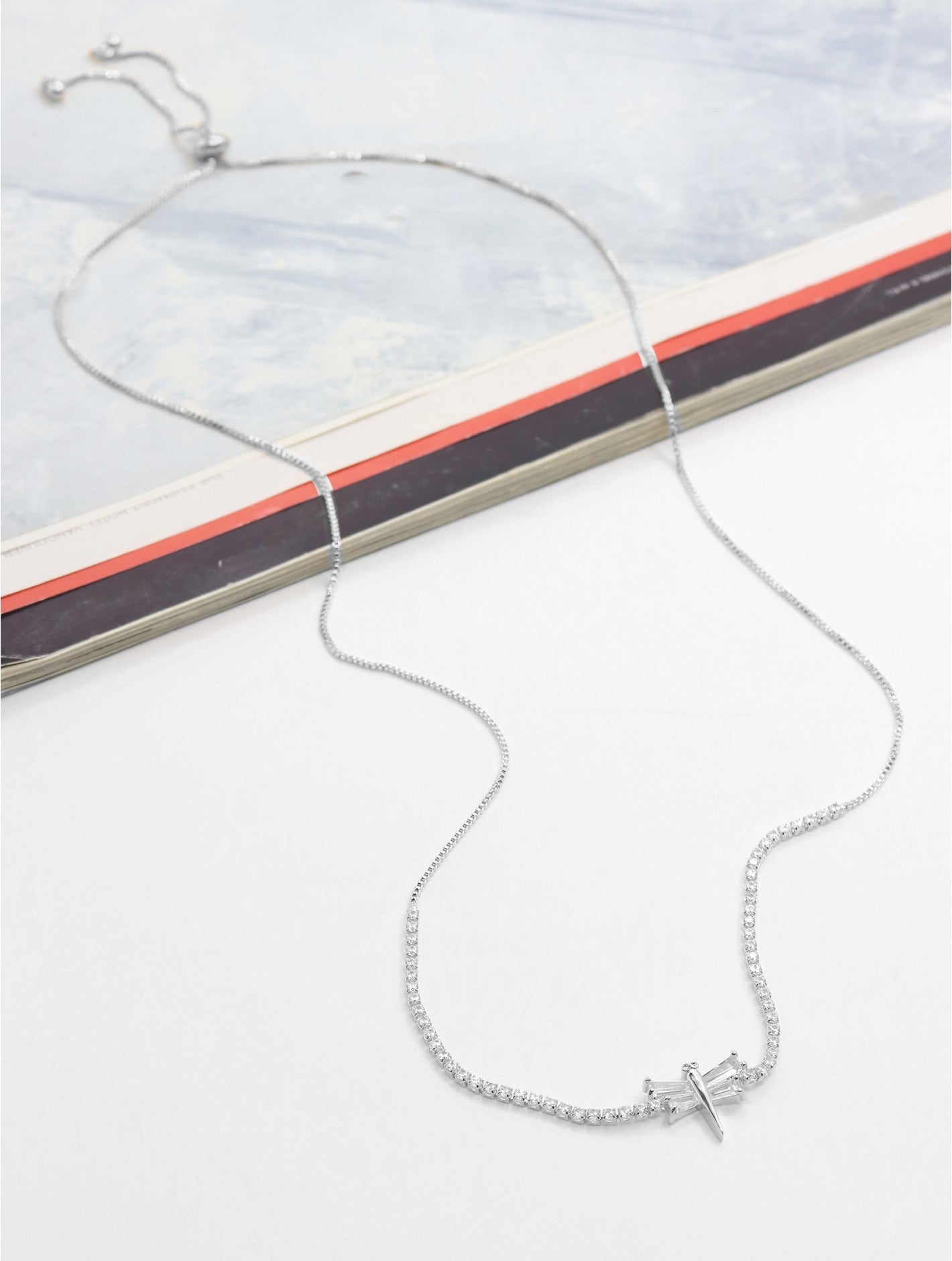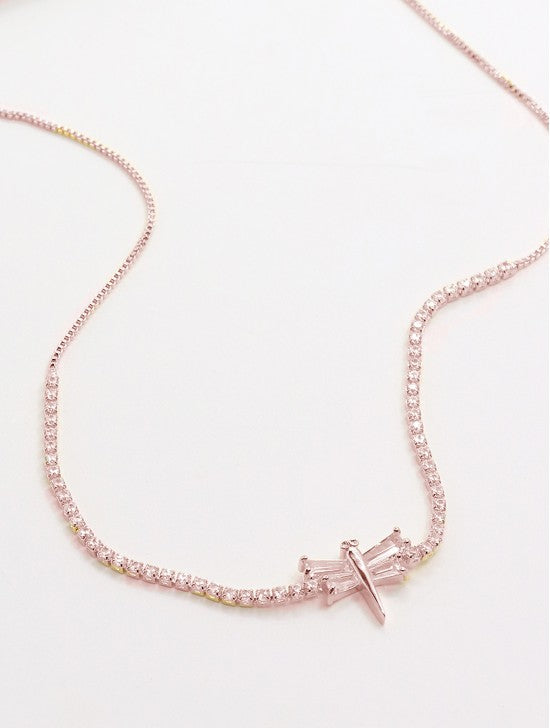 Delicate and enchanting, the Dragonfly Pendant Rhinestone Necklace brings a whimsical touch of nature-inspired elegance to your jewelry collection. The shimmering dragonfly pendant is adorned with sparkling rhinestones, catching the light with every movement. Suspended from a fine chain, this graceful piece symbolizes transformation, freedom, and beauty—making it the perfect accessory for day or night. Zinc Alloy Nickel Free Lead Free. 17". Available in silver or rose gold.