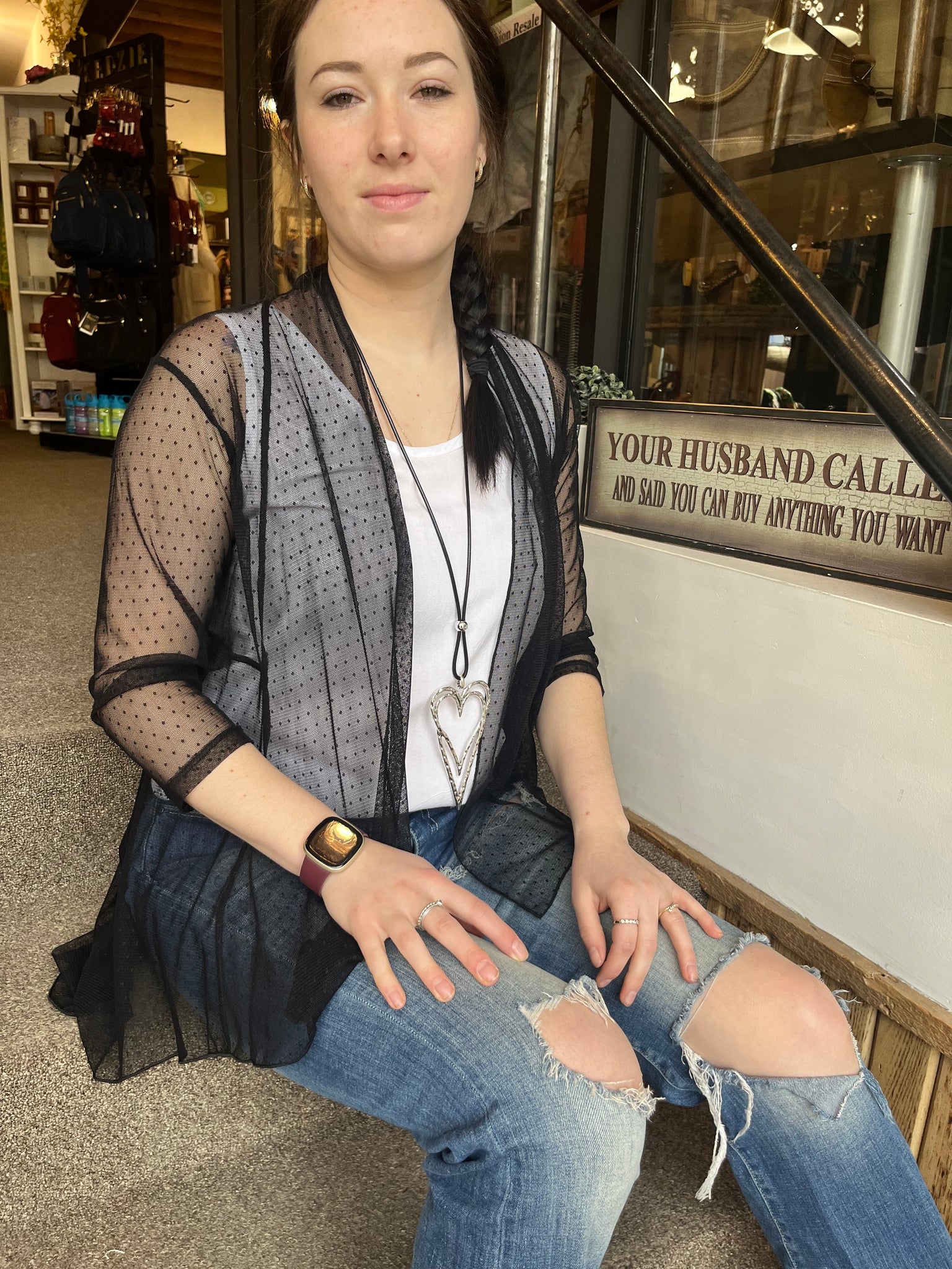 Effortlessly elegant, this Sheer Hi-Low Cover-Up is the perfect choice for weddings or any occasion where you need arm coverage. Made in Canada with a delicate netting-like fabric and 3/4 sleeves, it features a small pin-dot design for a touch of visual interest. Its high-low silhouette is not only stylish, but also incredibly flattering. You can even use it as a chic beach cover-up. 92% polyester/8% spandex