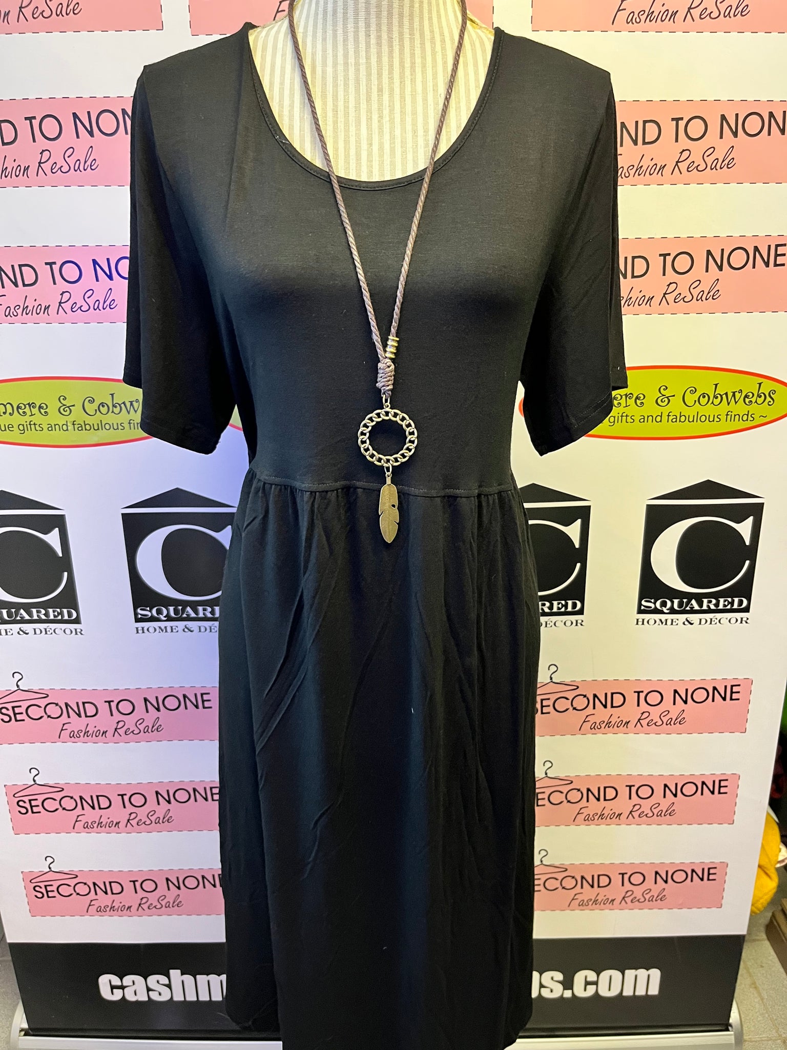 Get ready for summer with our Stretch Jersey Dress! Available in Navy, Black, and Fuchsia, this dress is perfect for any occasion. Simply throw it on and go, while enjoying a relaxed fit with a drop waist and fuller skirt. Plus, the short sleeves provide the coverage you want. AND IT HAS POCKETS!! This dress will be your go-to all season long!  95% viscose/5% elastane.