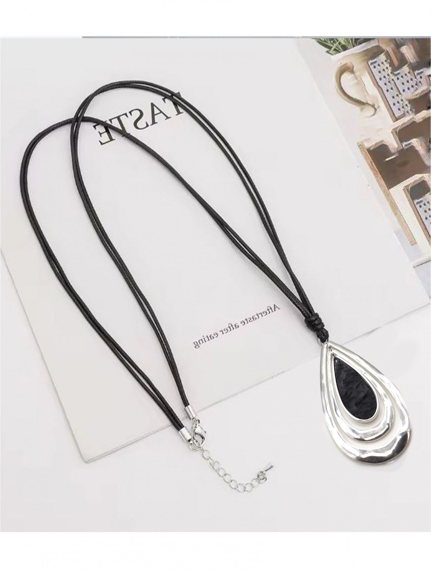 Add a refined and modern touch to your jewelry collection with the Rope Necklace with Teardrop Pendant. The sleek and simple drop pendant makes a subtle yet sophisticated statement, perfect for enhancing any outfit. Whether worn casually or dressed up for an evening event, this necklace is versatile enough to complement any occasion.