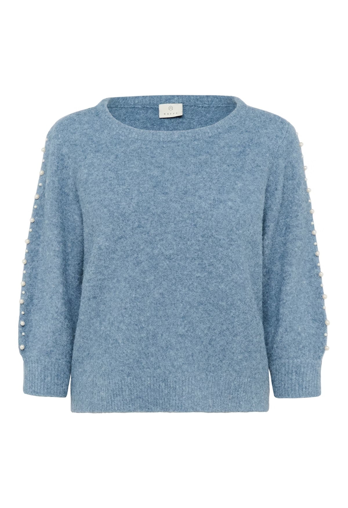 Wrap yourself in cozy charm with this Wool Blend Pearl Sleeve Sweater. Featuring playful 3/4 sleeves adorned with delicate pearl details, it adds a dash of whimsy to your fall wardrobe. Super soft to the touch, this pullover comes in two versatile colors, perfect for layering on chilly days. Stay stylishly snug and make every autumn moment sparkle!