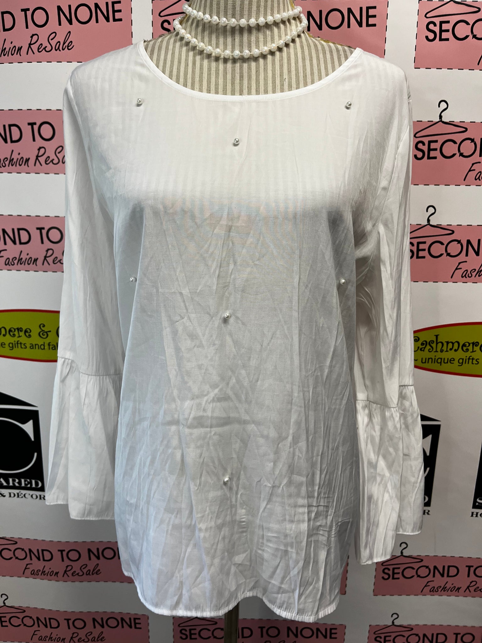 This airy white blouse from Apt. 9 features wide sleeves that dance with every move and delicate white pearl details on the front for a touch of charm. Lightweight and breezy, it’s perfect for adding a whimsical twist to your look while keeping comfort front and center. Size XL ensures a relaxed fit that feels as good as it looks!