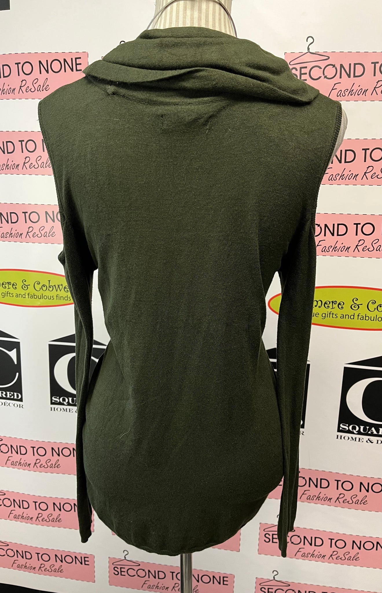 Step into style with this deep emerald green cowl neck top from Buffalo by David Bitton. Its playful cold shoulder cutouts add a flirty twist, while the soft drape of the cowl neck brings effortless elegance. Perfect for turning heads whether you're out on the town or just feeling fabulous at home. This size M top blends comfort with a chic edge to brighten up your wardrobe.