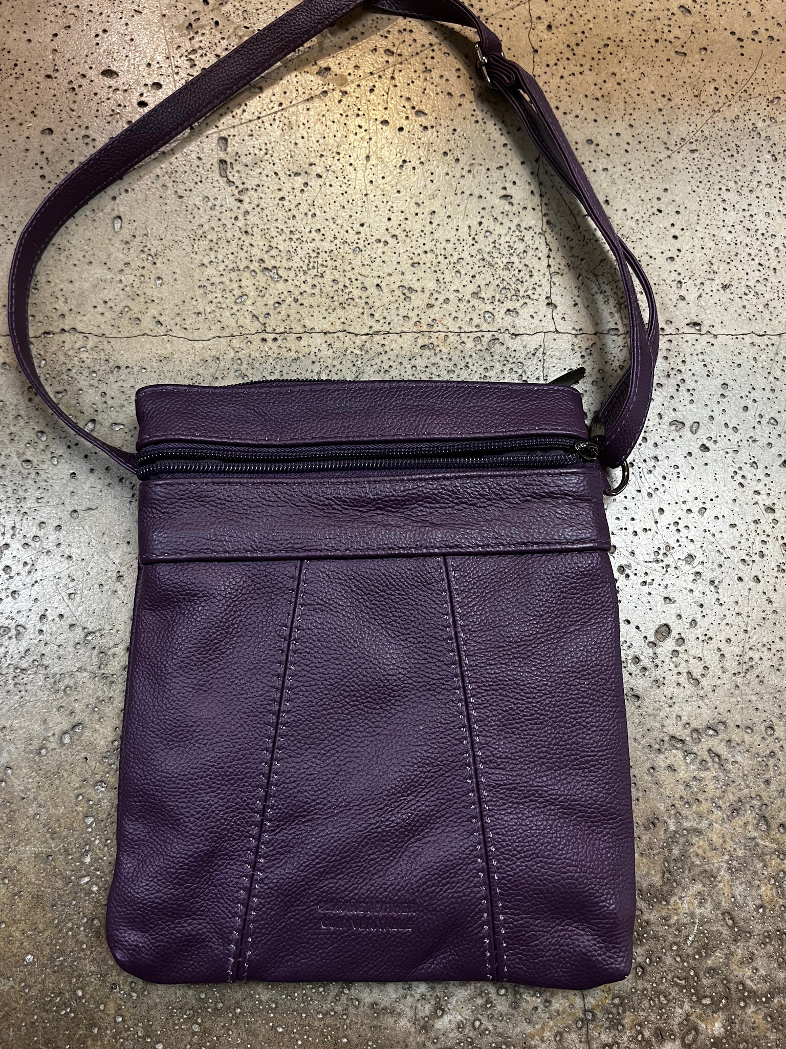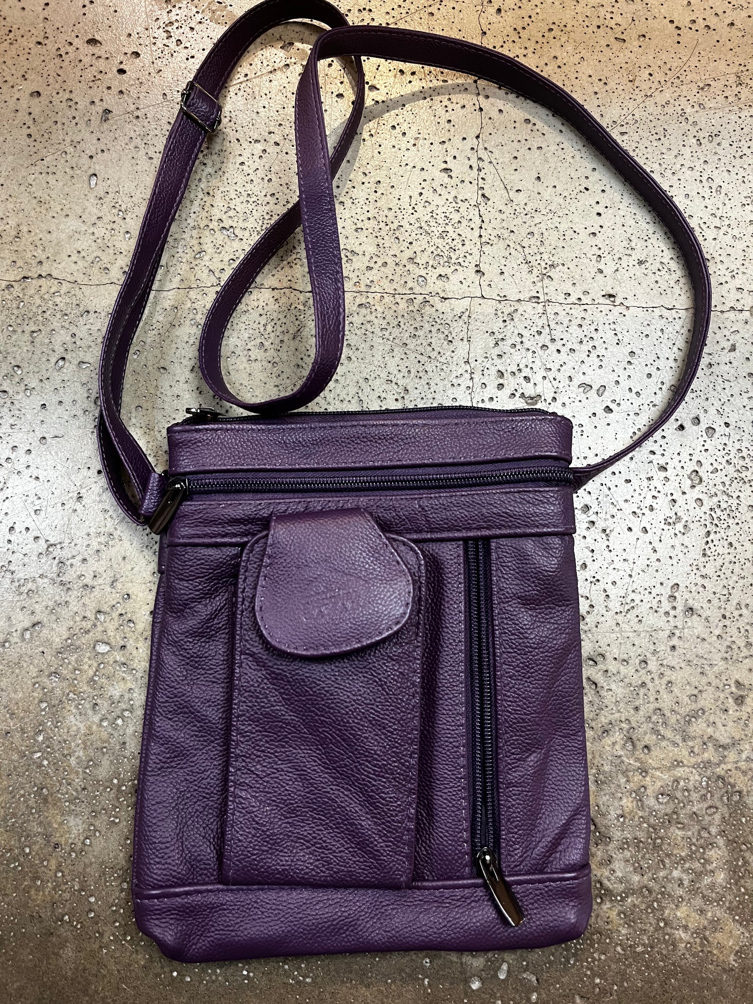 Carry your essentials in style with this stunning deep purple leather crossbody from Discovery Canada. Crafted from genuine leather that only gets better with age, this purse features an adjustable strap that lets you customize the fit for any adventure. Multiple pockets keep your phone, keys, and treasures organized and within reach. Whether you're exploring the city or heading out for a casual day, this versatile bag is your new favorite companion.