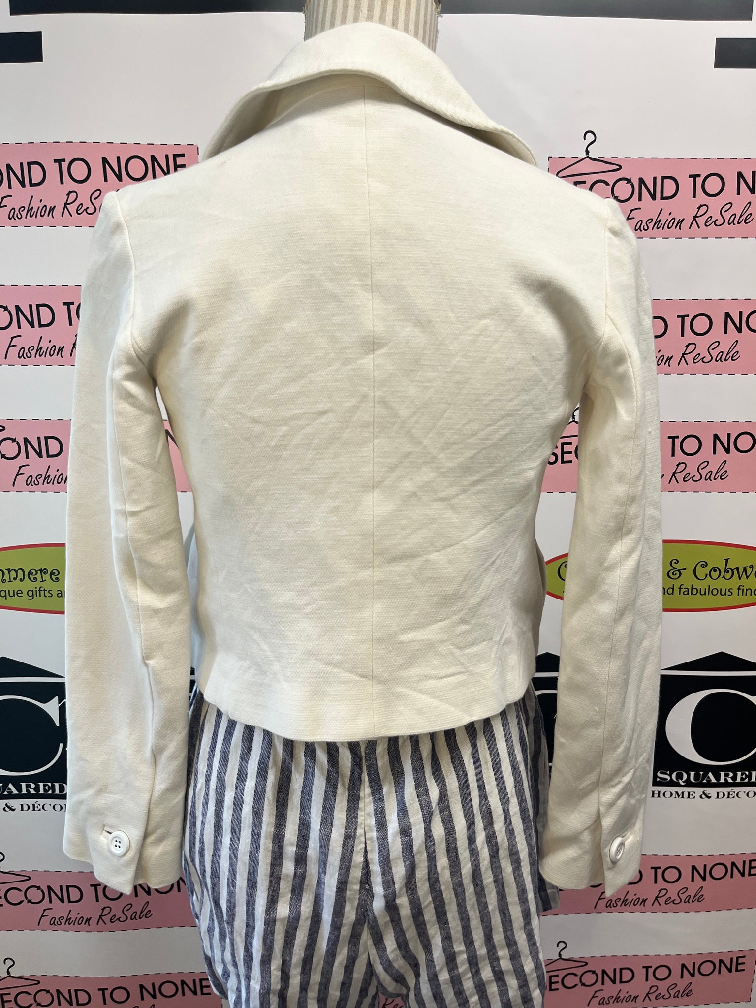 Step back into the fabulous 2000s with this vintage Dolce & Gabbana cropped ivory blazer. Crafted in Italy, its double-breasted front and full lining bring classic luxury to your wardrobe, while the pockets add a touch of practicality. Perfect for channeling your inner Y2K icon with playful sophistication.