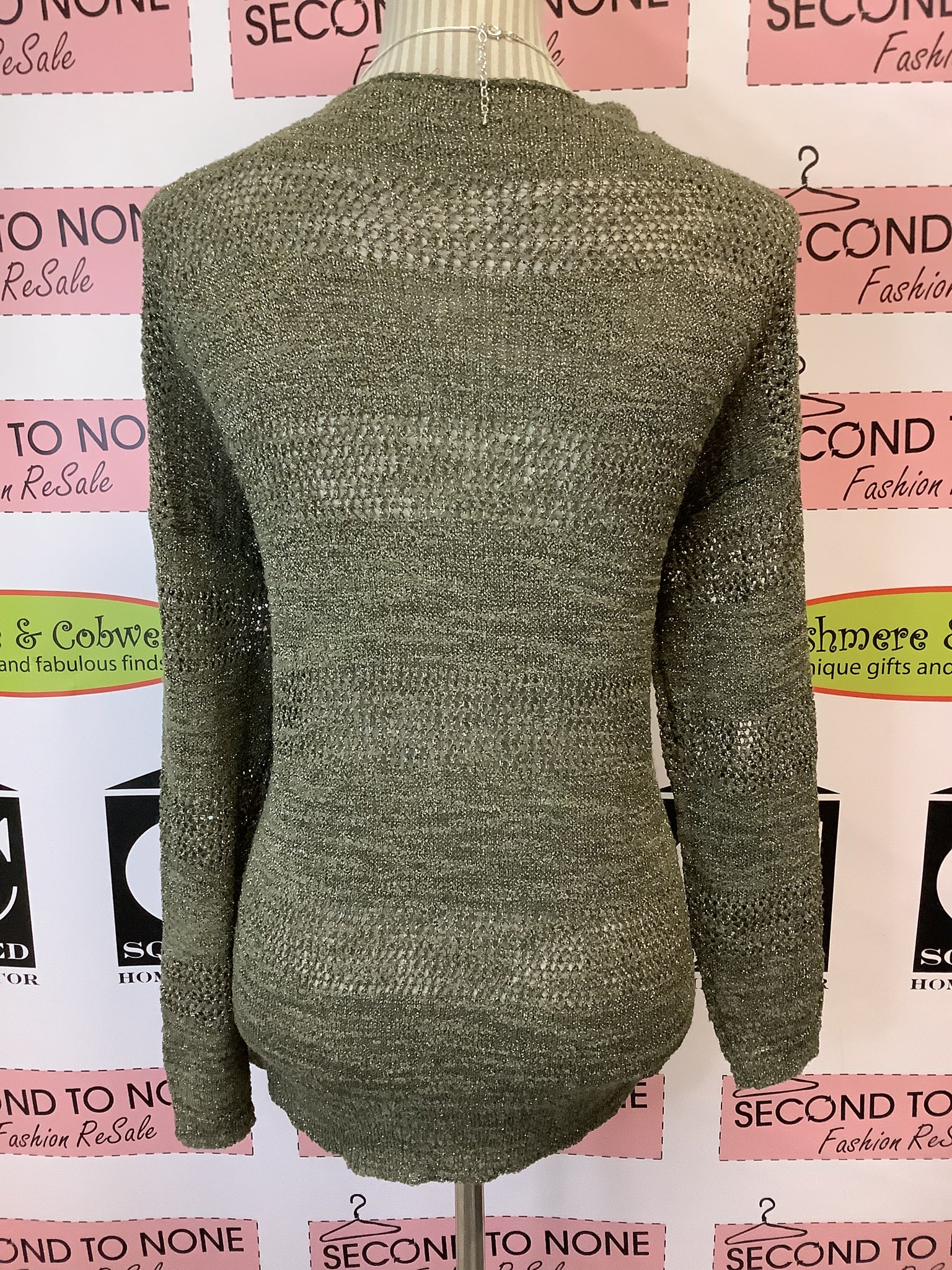 Elevate your wardrobe with this enchanting NADO Mystical Green Long Sleeve top. The mesmerizing sparkle detail and alluring deep V-neck create an irresistible statement piece that demands attention. Crafted from lightweight mesh-like fabric, this size S top is perfect for layering under our Utility jacket. Add chunky necklaces to complete this head-turning look that transitions effortlessly from day to night. Don't miss your chance to own this versatile, eye-catching essential.