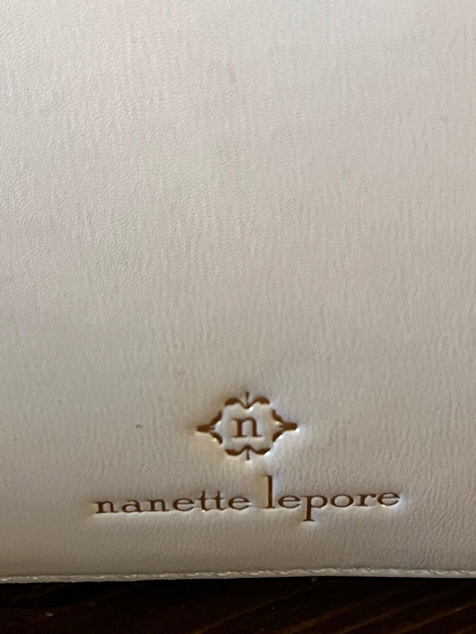 Flaunt your unique style with the Nanette Lepore Lilli Shoulder Bag. This taupy white bag features a playful floral cut out design and accents on the shoulder straps. With a zipper closure, this bag is both stylish and practical. (Wear your heart on your sleeve - or your shoulder - with this quirky bag!)