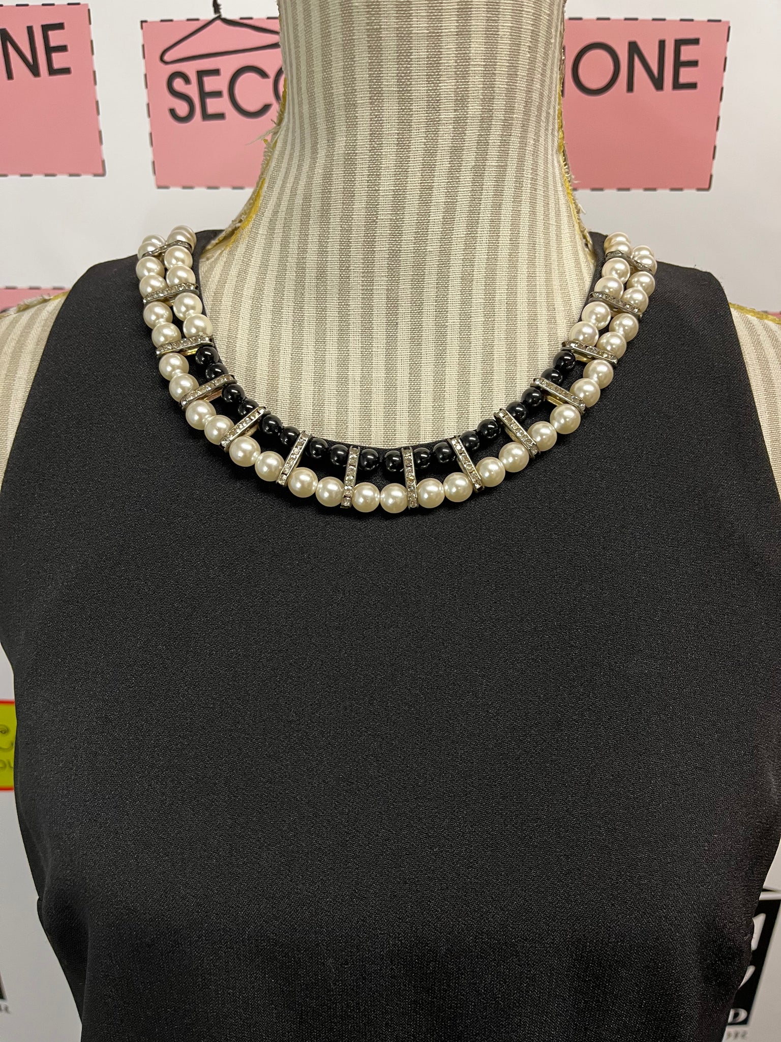 Add some Nine West flair to your wardrobe with this sleeveless black shift dress! Adorned with delicate pearl and rhinestone details at the neckline, this dress is perfect for any occasion. Don't miss out on this statement piece by Nine West!