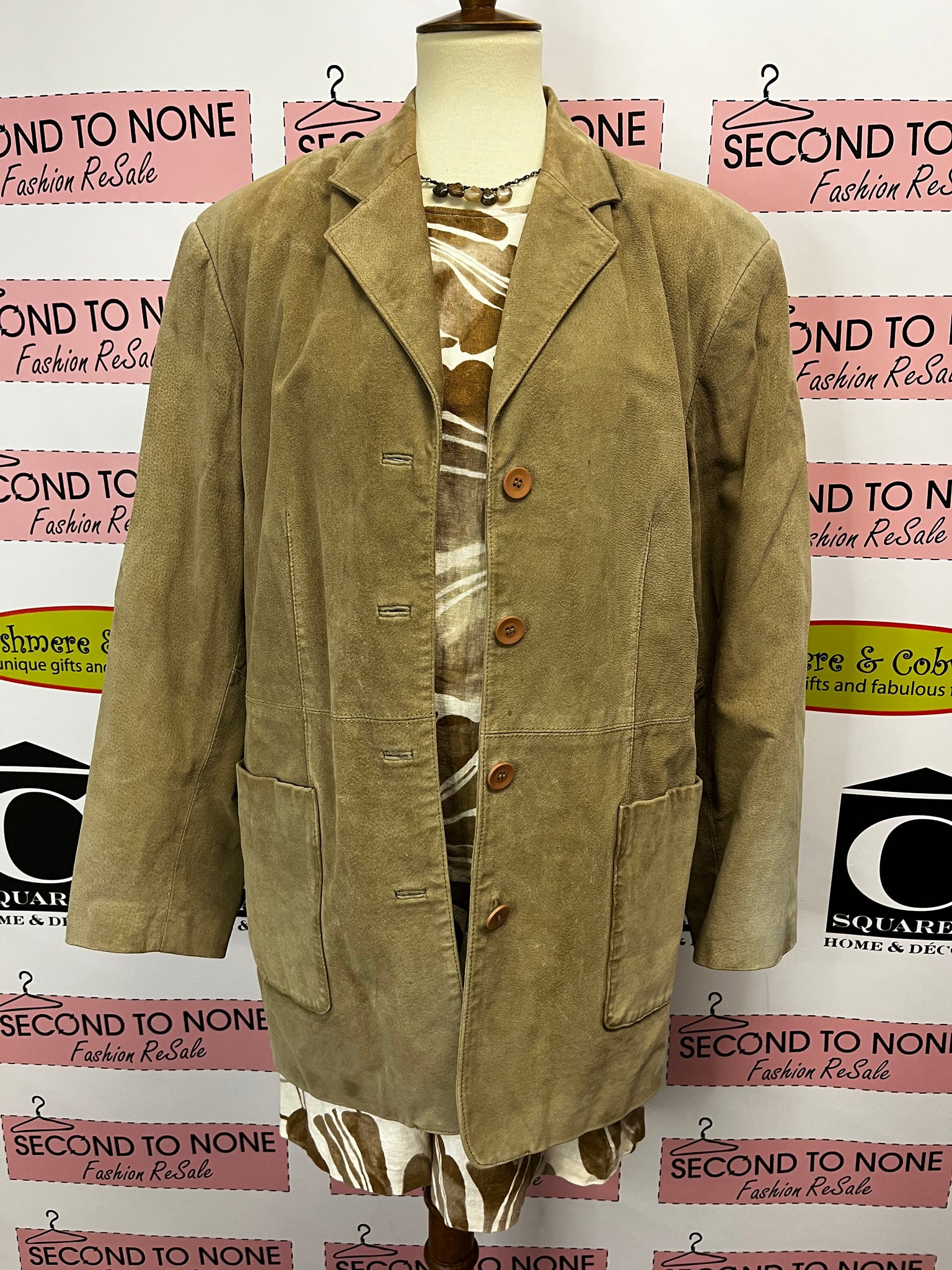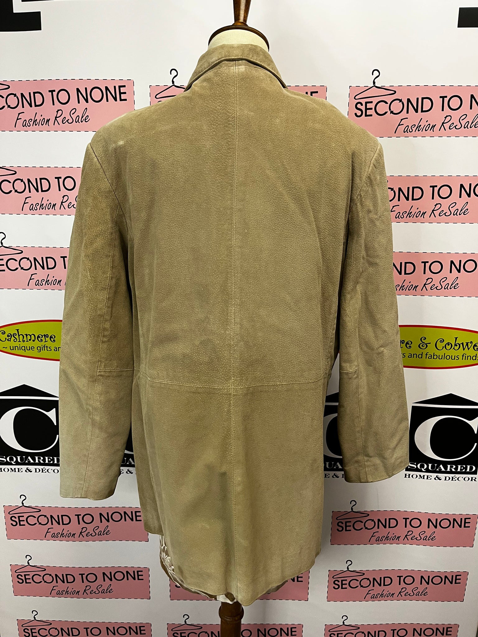 Add a touch of vintage charm to your wardrobe with our Northern Reflections Suede Jacket. Made from genuine suede, this beige button-up jacket is both stylish and high-quality. Perfect for the free-spirited fashionista. Size not indicated but fits like a L.