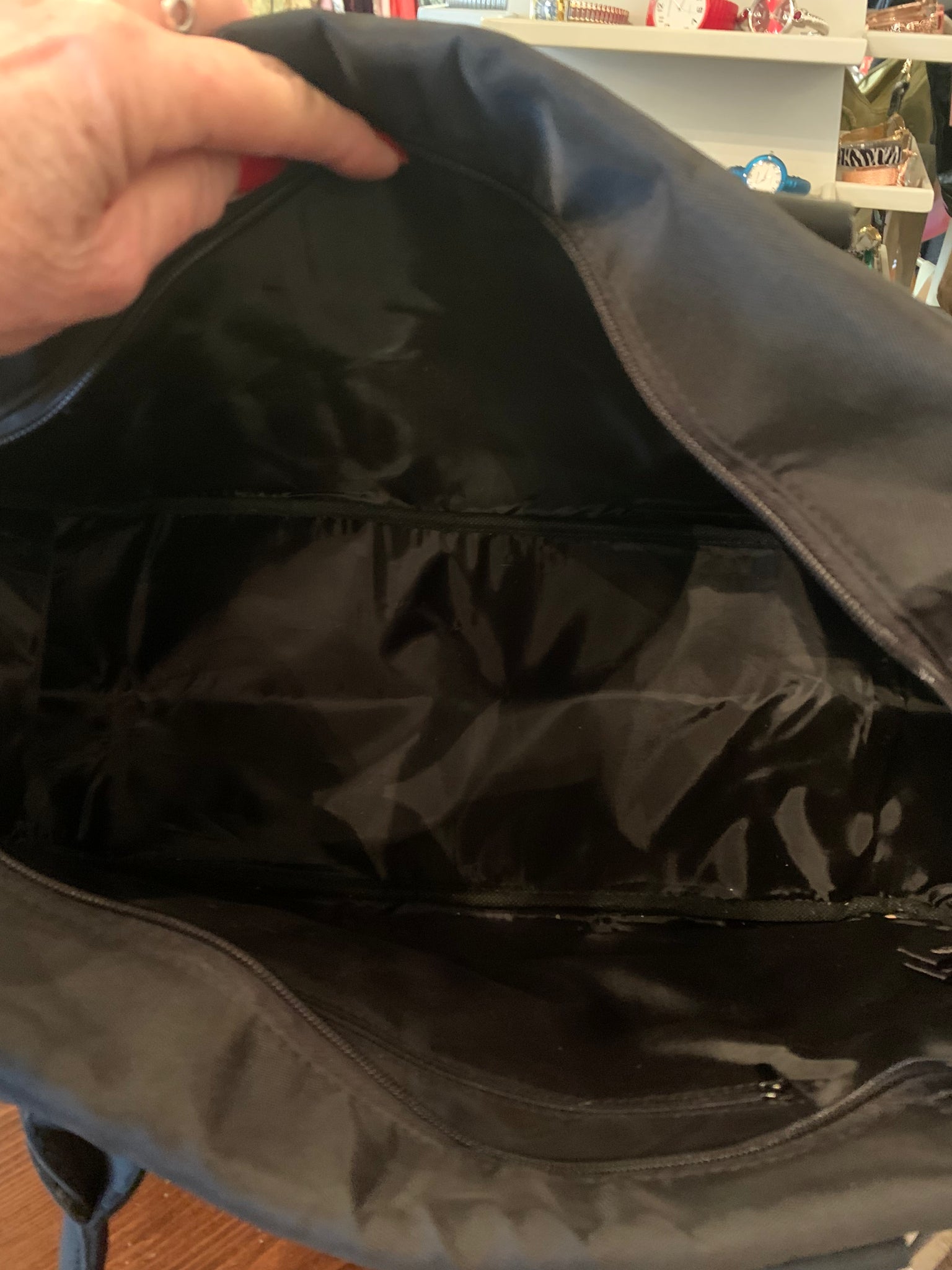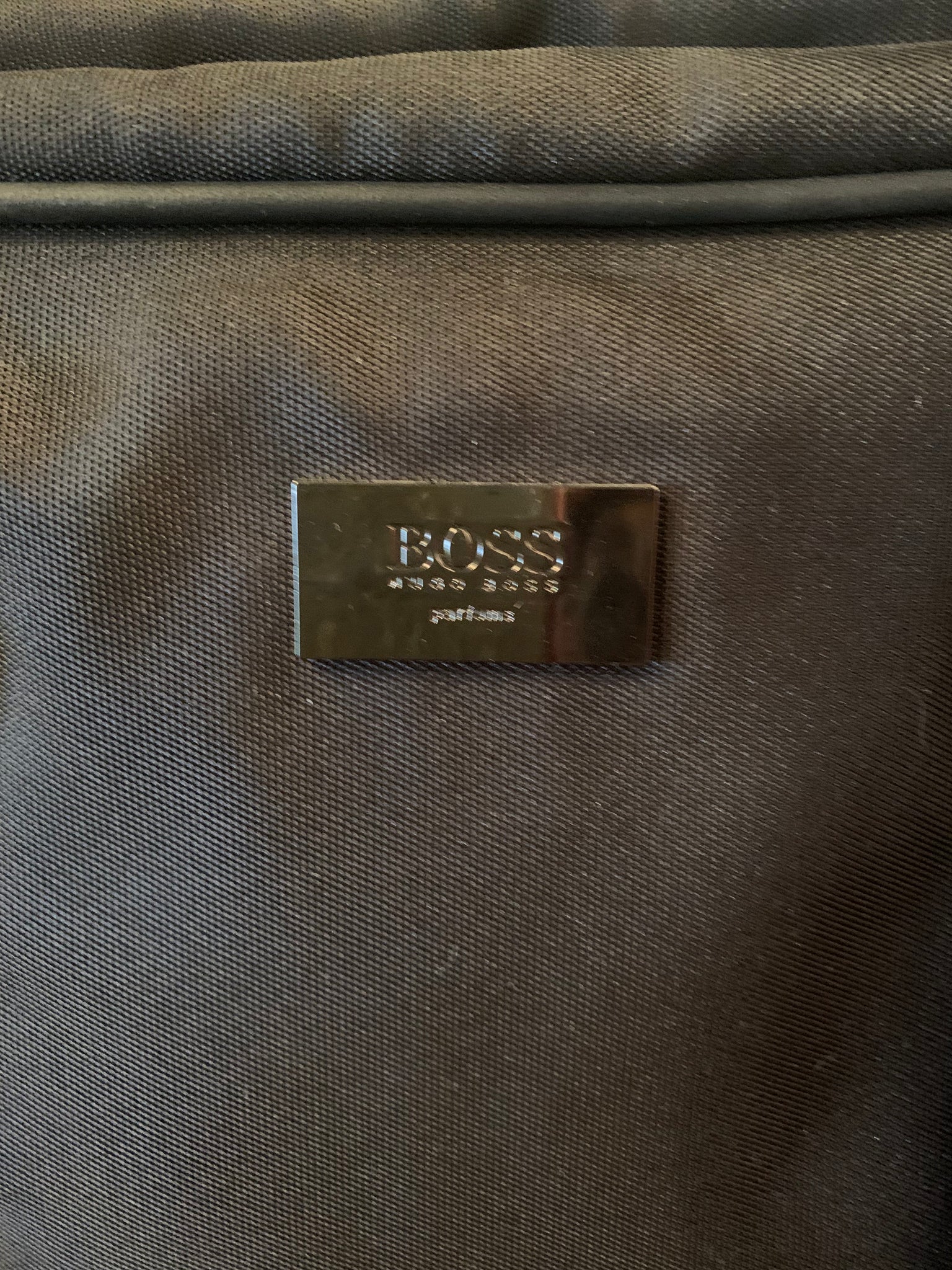 Nice sized unisex black Hugo Boss duffle bag. Looks like it’s never been used. Zippered top & lots of inside room. Use it for travelling, the gym or work. Has adjustable shoulder strap or shorter handles. Makes a great gift for any guy or gal. Similar styles retail for $250+. Measures 18”w x 12” h x 7” deep. Part of our Luxe For Less selection.