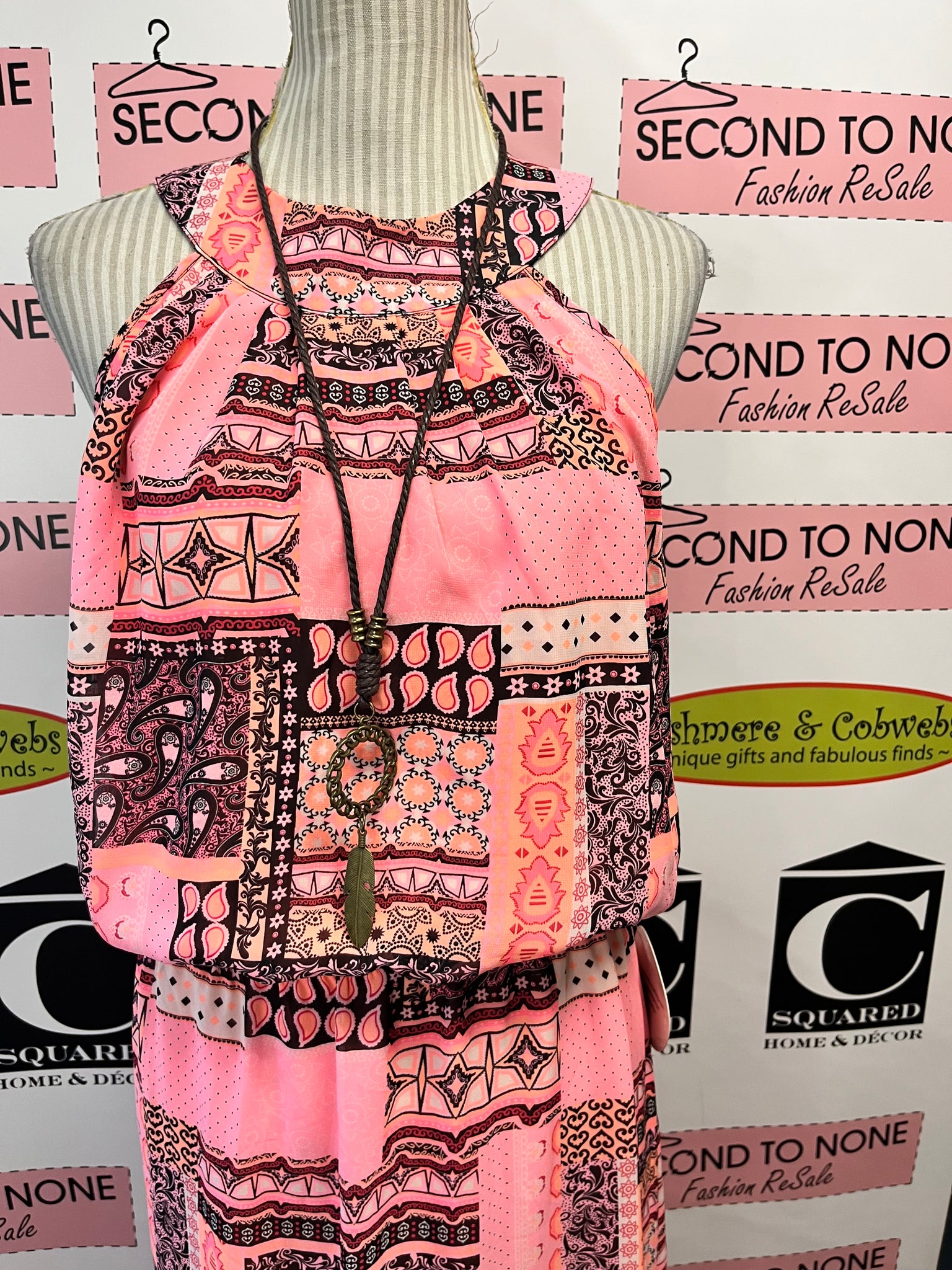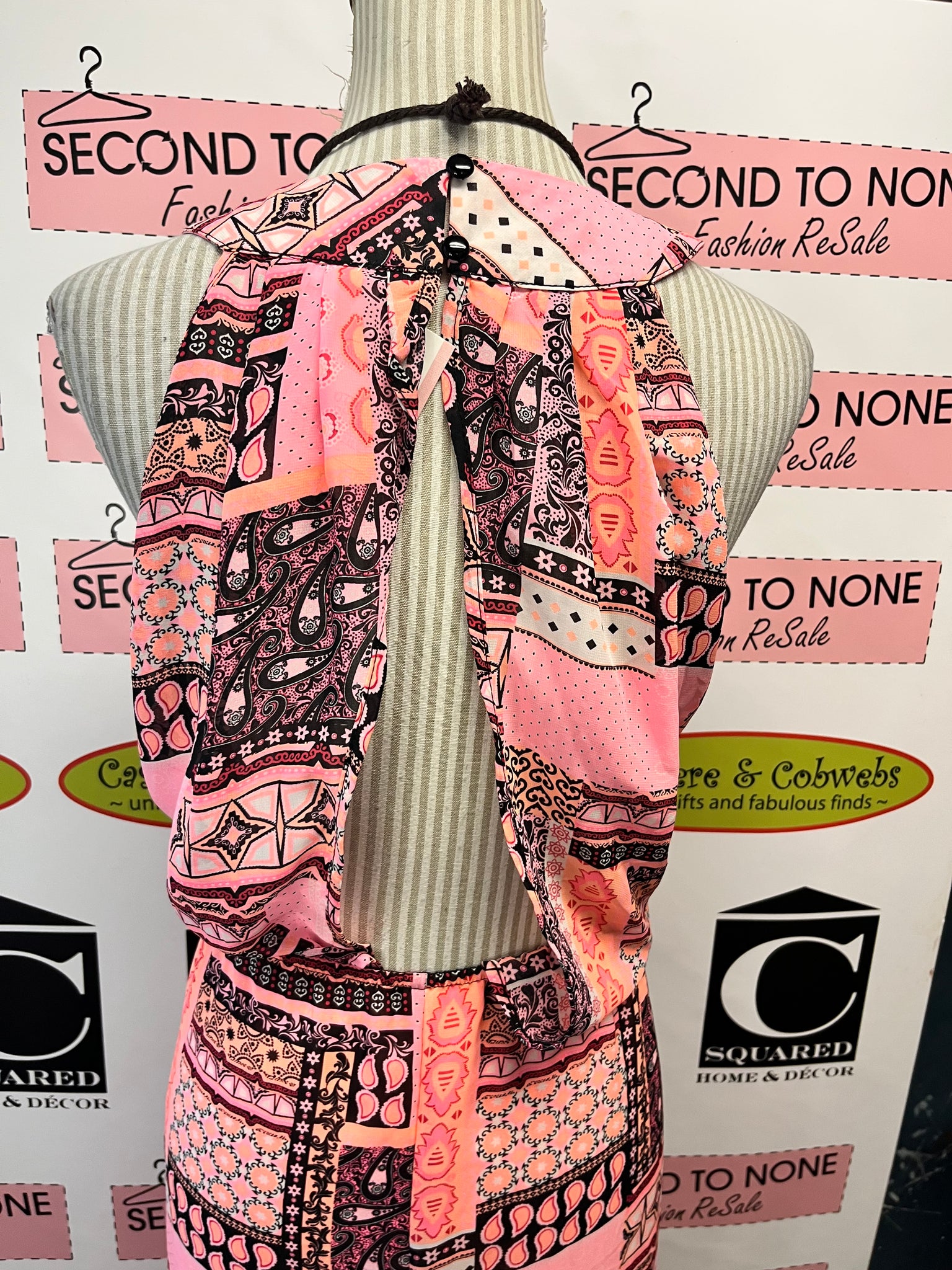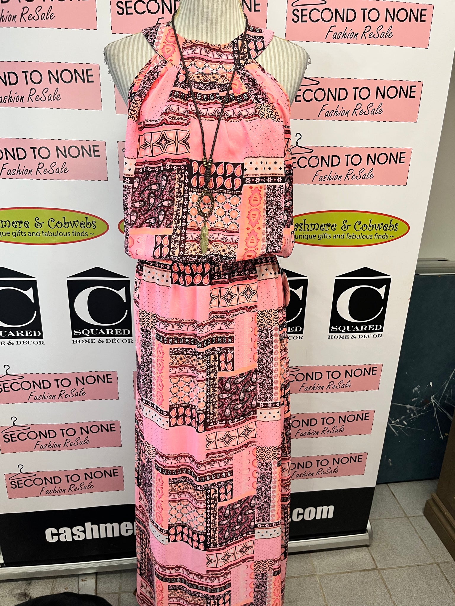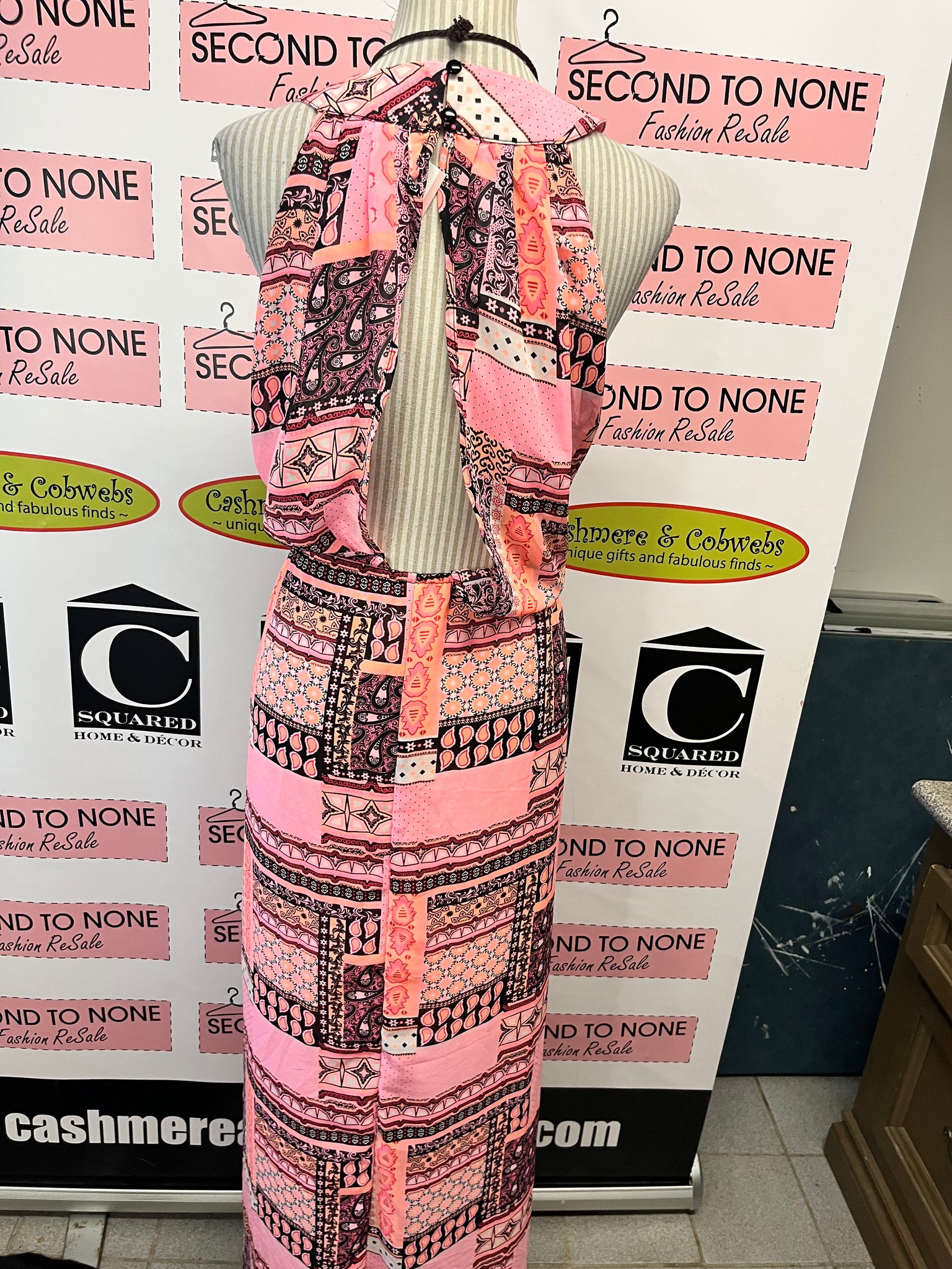 Get ready to steal the spotlight on your next getaway with this Coral Print Maxi-Dress! Featuring a flirty halter-style neckline and breezy open sleeves, it’s perfect for sun-drenched days or dreamy cruises. The open back adds a cheeky twist, while the elastic waist lets you flaunt your curves just right. Fully-lined for comfort & discretion. With its vibrant abstract print, this dress is as fun as it is fabulous—your new vacation must-have! Dandelion brand. 100% polyester
