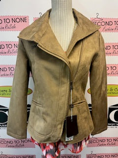 Step into style with this brown genuine suede jacket from BV Clothing. Crafted in Italy, it boasts a smooth zip-up front and premium quality you'll love. Brand new with tags, it’s ready to elevate your wardrobe with a touch of playful sophistication. Perfect for adding a bit of luxe to your everyday look!