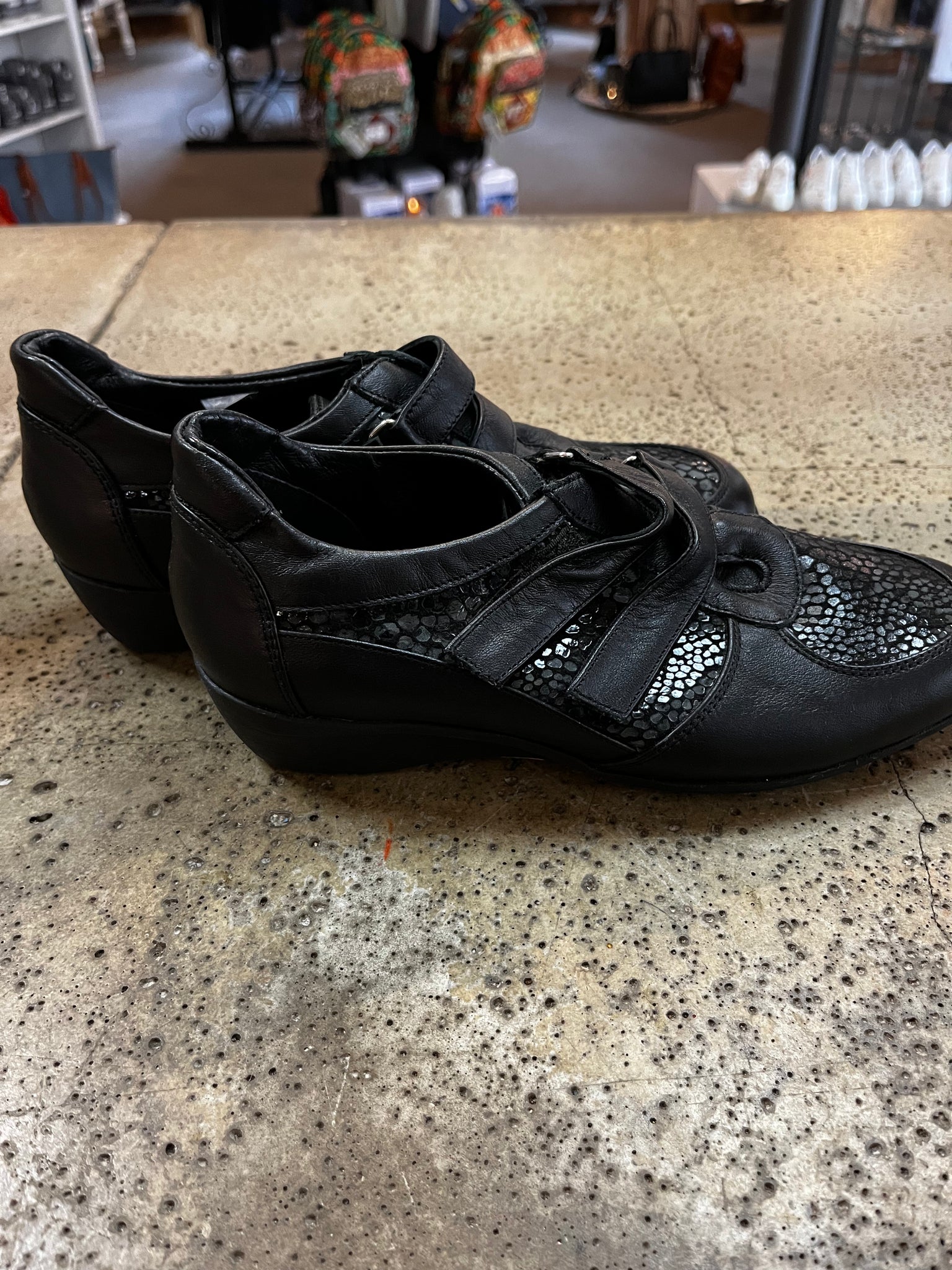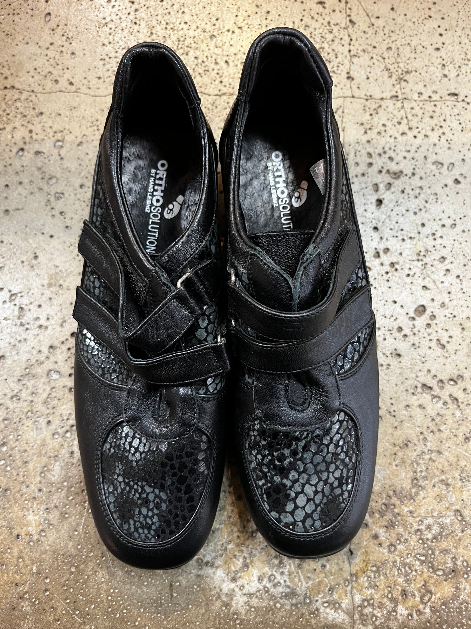 Get ready to step up your shoe game with these never-before-worn NWT Hans Leibniz shoes! Designed by the one and only Hans Leibniz, these size 6 kicks feature ortho solutions for ultimate comfort. Plus, the shiny pattern on the panels will make you stand out in style. Who needs laces when you have velcro straps?! Original price tag says $215.00