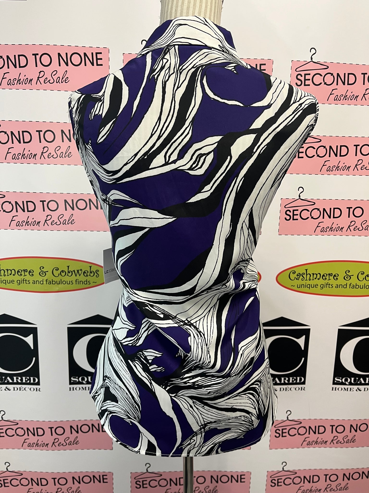Add a splash of fun to your wardrobe with this NWT Liz Claiborne shell tank! Featuring a playful purple, black, and white print, this collared V-neck top brings a fresh twist to your everyday style. Perfect for layering or wearing solo, it’s ready to turn heads with its vibrant colors and flattering fit. Tags still on, so you know it’s brand new and waiting for your next adventure! Retailed for $59.00