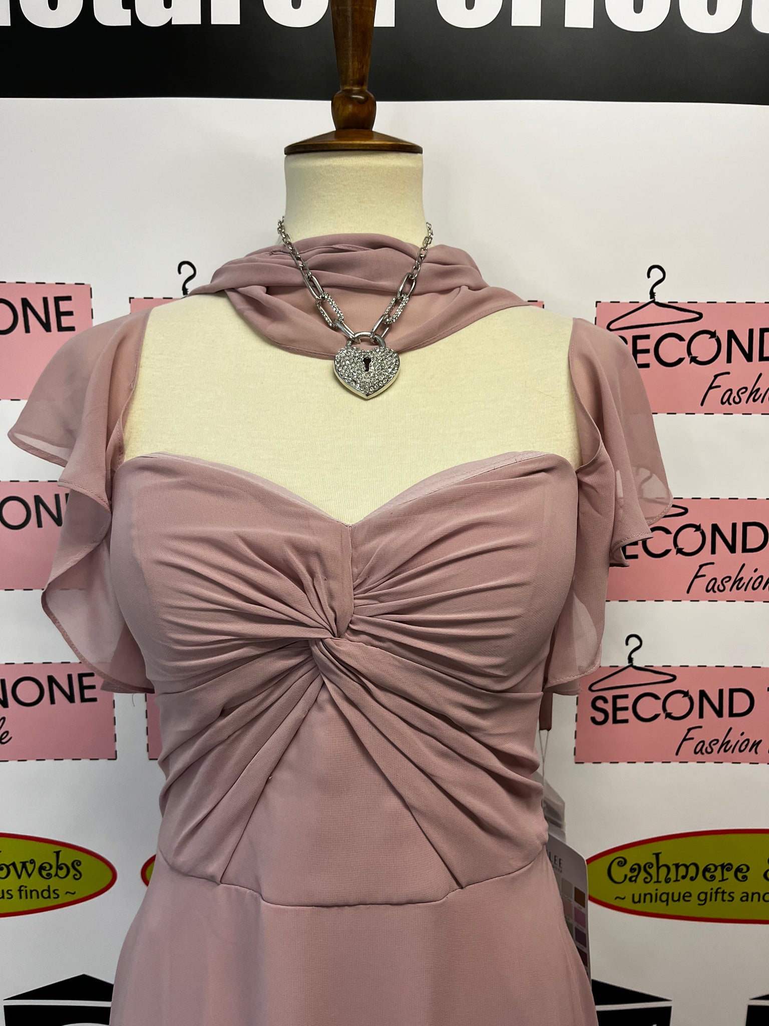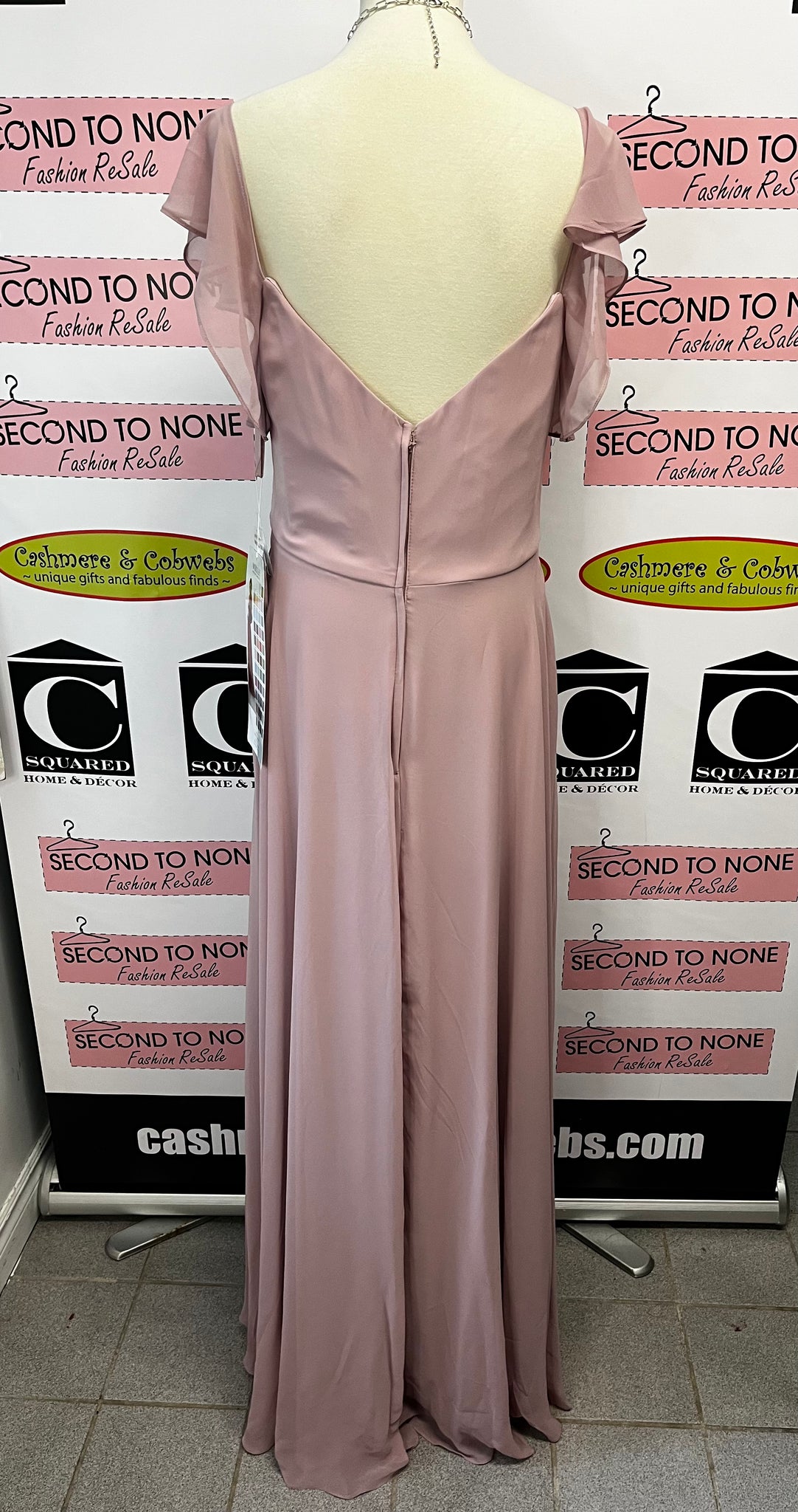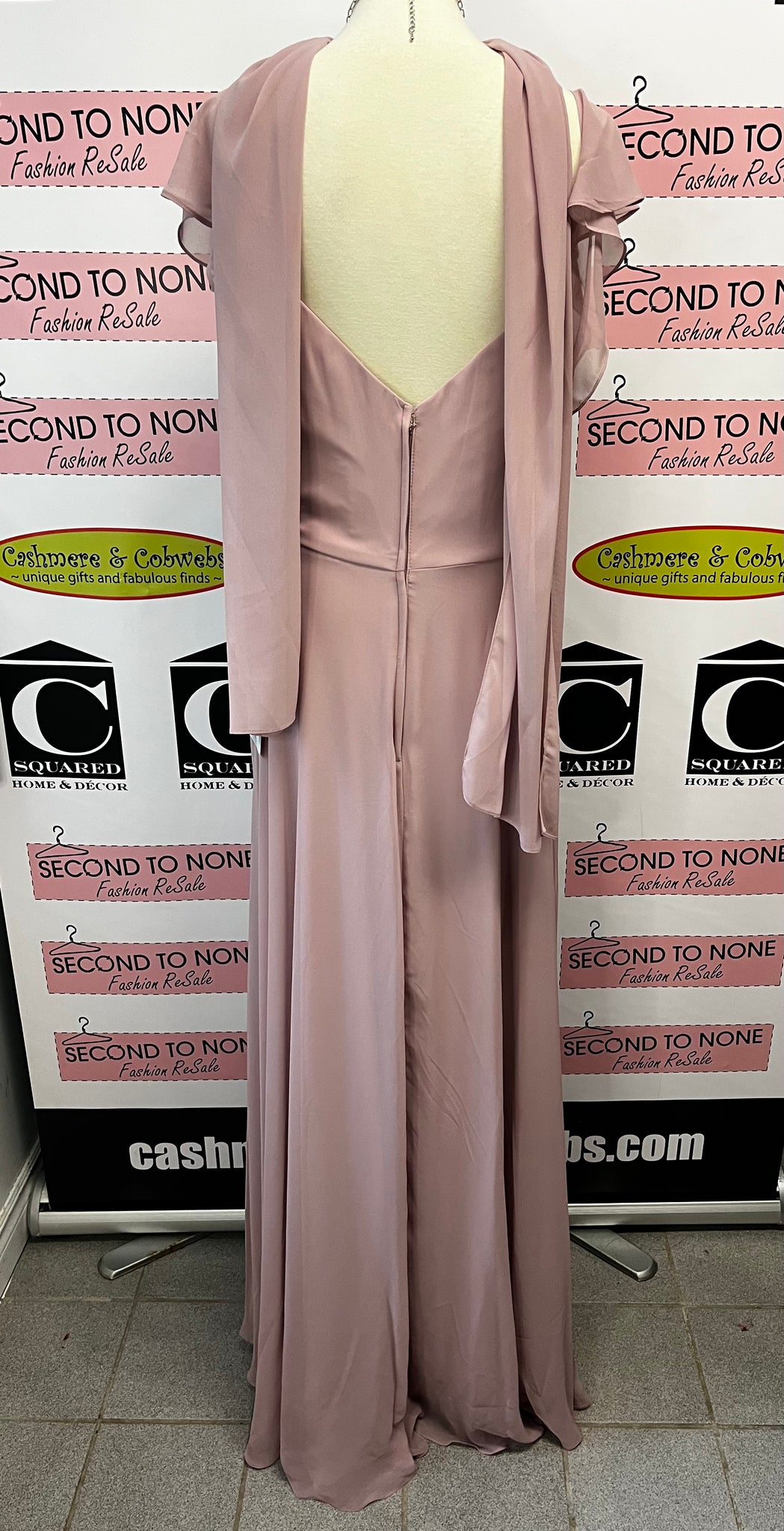 Add a touch of playfulness to your special day with this new with tags Morilee Bridesmaid Dress in Desert Rose. The chiffon fabric drapes beautifully in this gorgeous a-line dress. The ruched bodice is accented by a sweetheart neckline and off the shoulder flutter sleeves, creating a whimsical look. Comes with a matching thin scarf for an extra touch of fun.