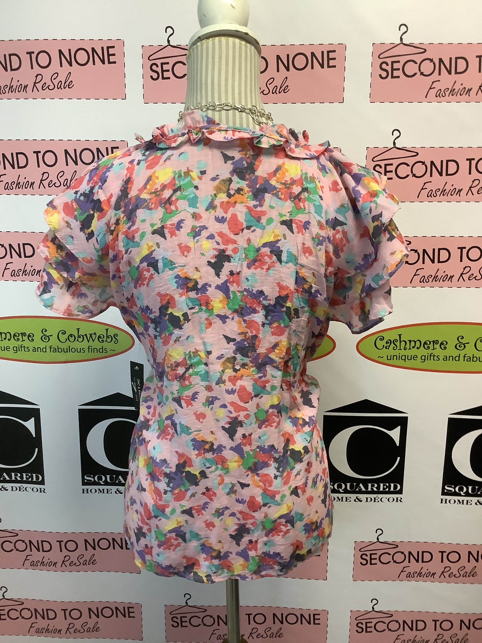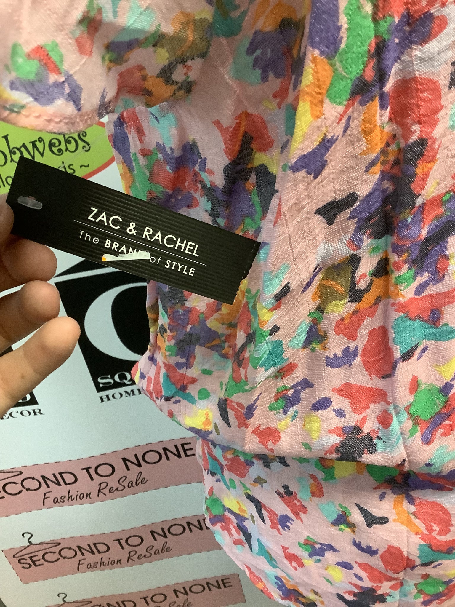 Unleash your playful side with this brand new Zac & Rachel Keyhole Blouse! Featuring a charming pink iris bloom pattern and adorable tie-front neckline with frills, this top brings all the fun to your wardrobe. The keyhole detail adds a flirty touch perfect for spring and summer outings. Layer with a bright jacket or denim coat for added style points!
