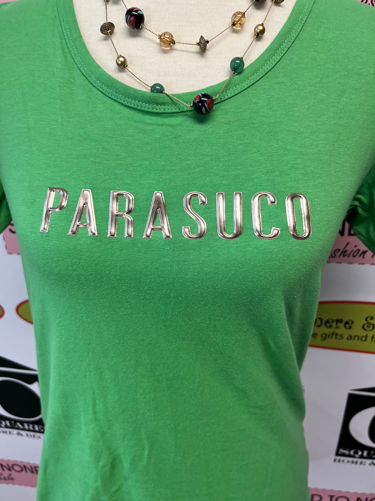 Add some playful flair to your wardrobe with the Parasuco Tee! This bright green t-shirt, made of a comfortable and stretchy cotton blend, is perfect for adding a pop of color to any outfit. Plus, it's by Parasuco - so you know it's stylish.