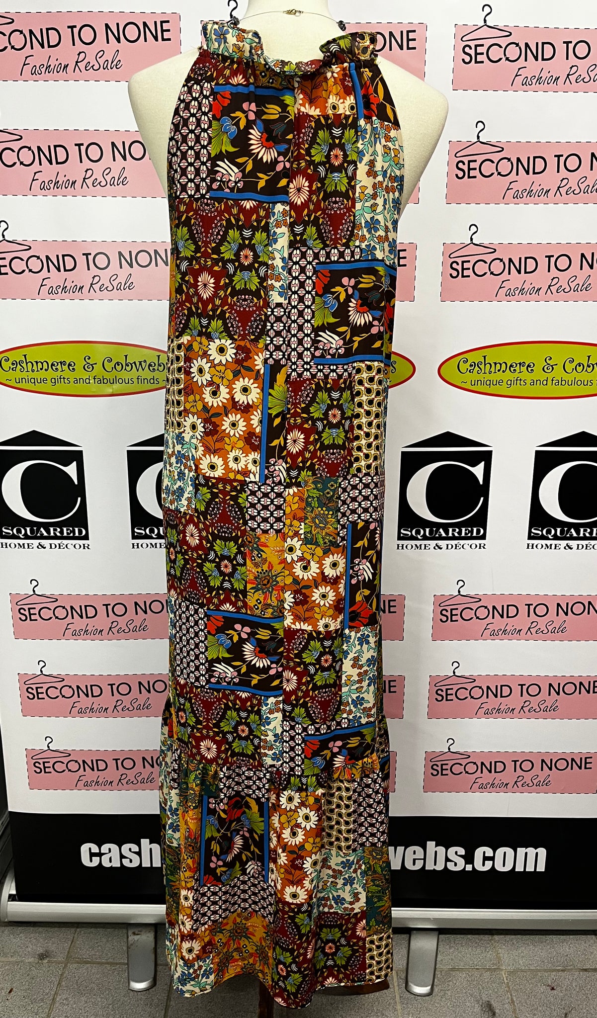 Be a fashion game-changer with our Portugal-Looking Maxi Dress. This dress features a colorful patchwork-inspired print, a tie at the neckline and a large ruffle hem. Lightweight and perfect for traveling, you can also add a belt for an extra fabulous look. (Quirky and fun, this dress will turn heads wherever you go!) Emma & Michele brand. 100% polyester.