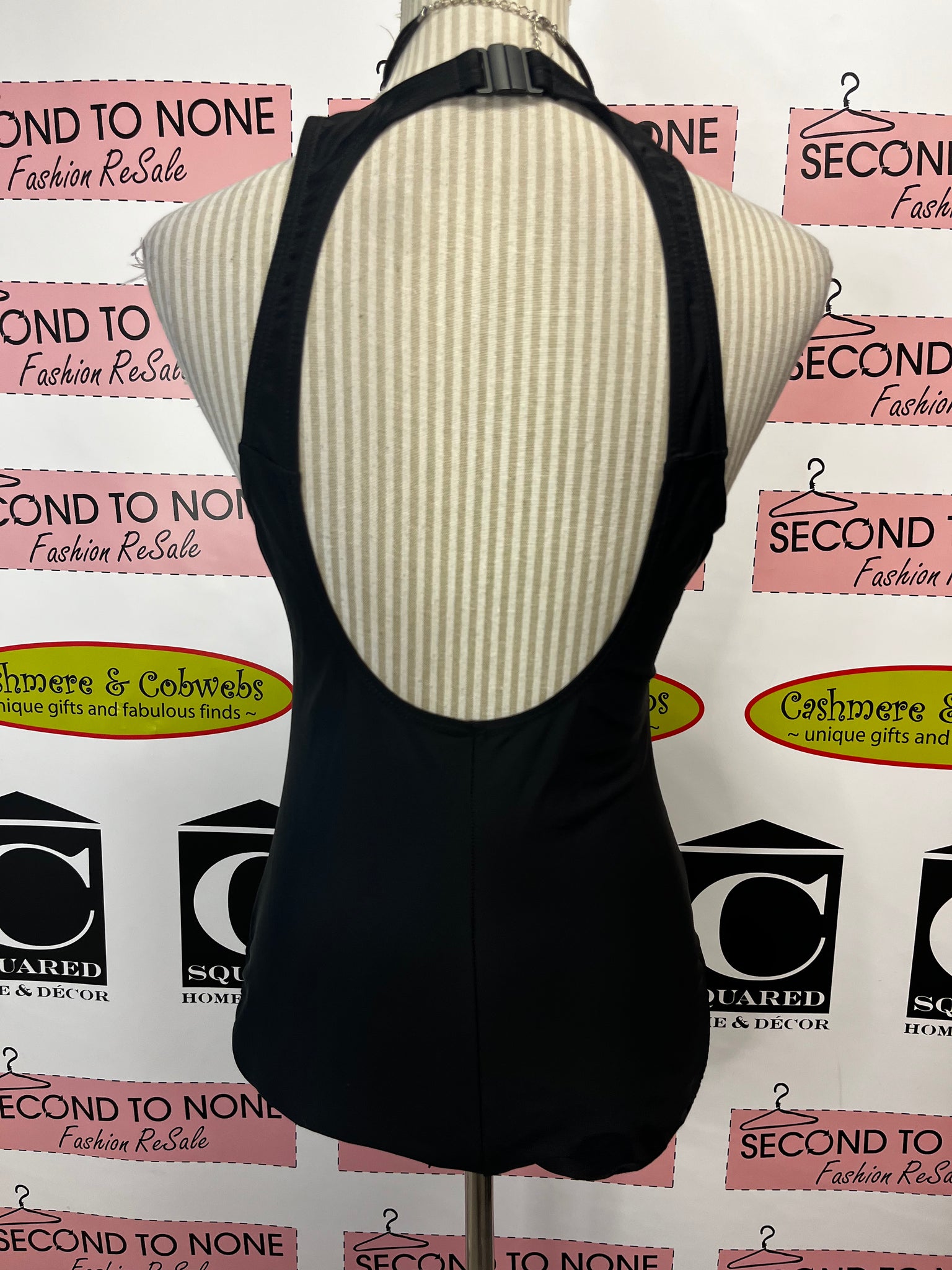 Dive into summer fun with this sporty one-piece bathing suit from Roots Swim. Featuring a bold black, white, and neon yellow color combo, its stretchy fabric ensures a flattering fit that moves with you. The open back adds a flirty touch while keeping things cool and comfortable. Perfect for poolside adventures or beach days, this suit blends style and performance effortlessly.