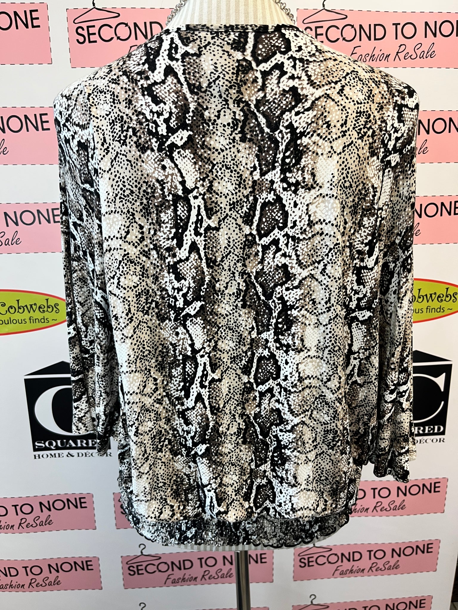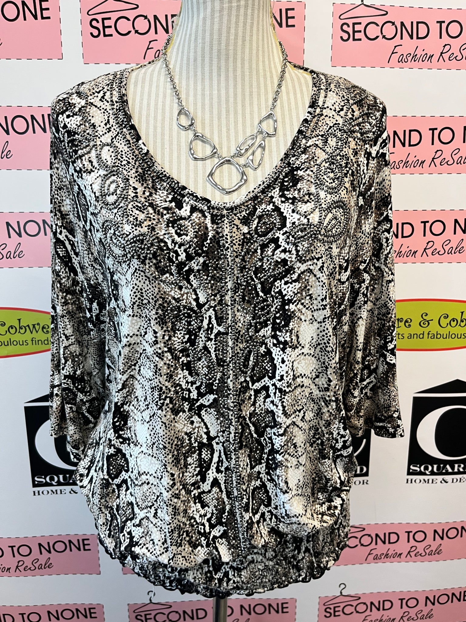 Embrace bold style with this playful snakeskin print blouse from Style & Co. The batwing sleeves add a flirty flair, while beaded details at the neckline bring a touch of sparkle to your look. Crafted with a stretchy fabric, it offers comfort and ease for all-day wear. Perfect for turning heads with effortless charm.