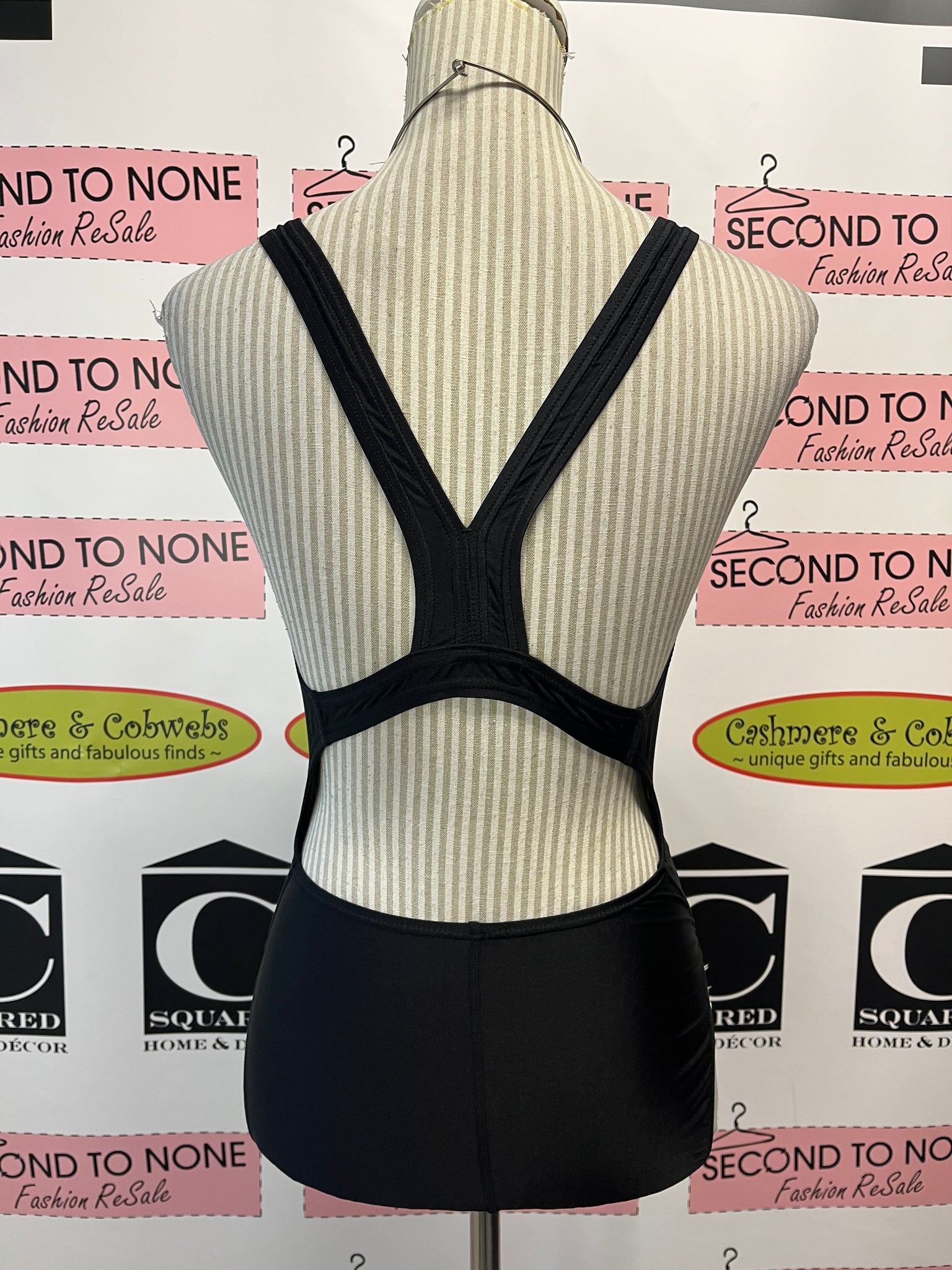 This sleek black one-piece bathing suit from Speedo combines sporty style with practical design. Featuring strappy cutouts and a full-coverage front, it offers both comfort and confidence for active days by the water. Perfect for those seeking a flattering fit without compromising on support.