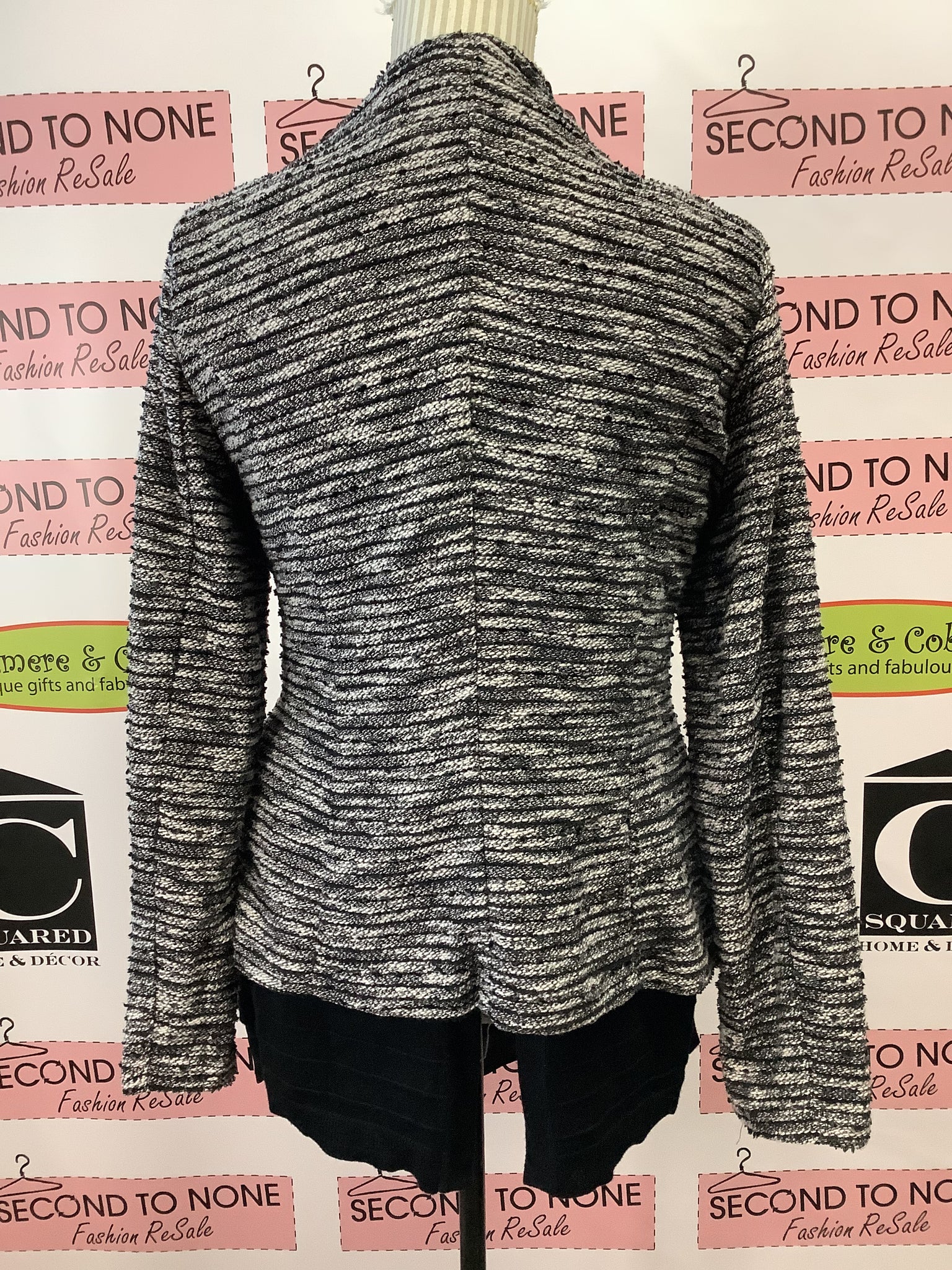 This Suzanne Betro Zip Up Cardigan adds a touch of flair to your outfit while keeping things simple. It boasts a zip up closure, bold black and white stripes, and a draped look. Plus, two front functional hidden pockets let you store your essentials without sacrificing style.