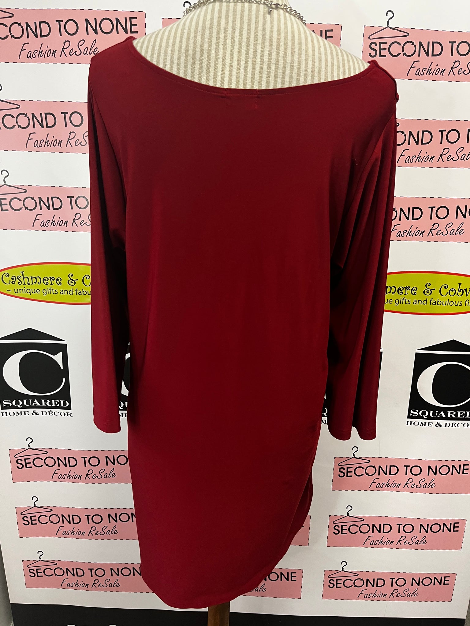 This tunic by Sympli is anything but ordinary, with its deep red color and cold shoulder style. Its stretchy material ensures a comfortable fit, while the asymmetric neckline and bottom hem add a unique touch. Made in Canada, this tunic showcases both style and quality.