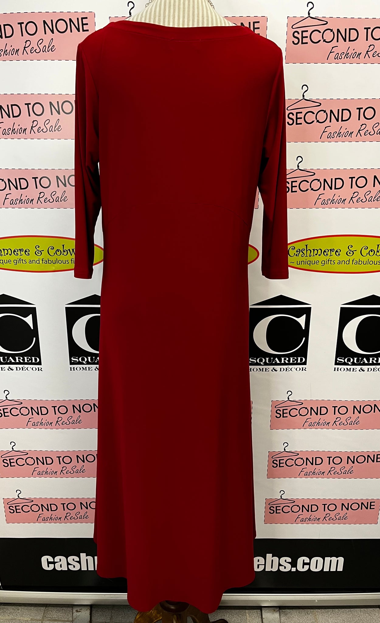 Turn heads in this playful Sympli Sexy Red Dress, designed with a flirty criss-cross front neckline and flattering drapey fabric that moves with you. The 3/4 sleeves add a touch of elegance, while the high-defined waist accentuates your silhouette. Finished in a long maxi length, this size 6 dress is perfect for making a bold, confident statement wherever you go. 94% polyester/6% spandex. Made in Canada.