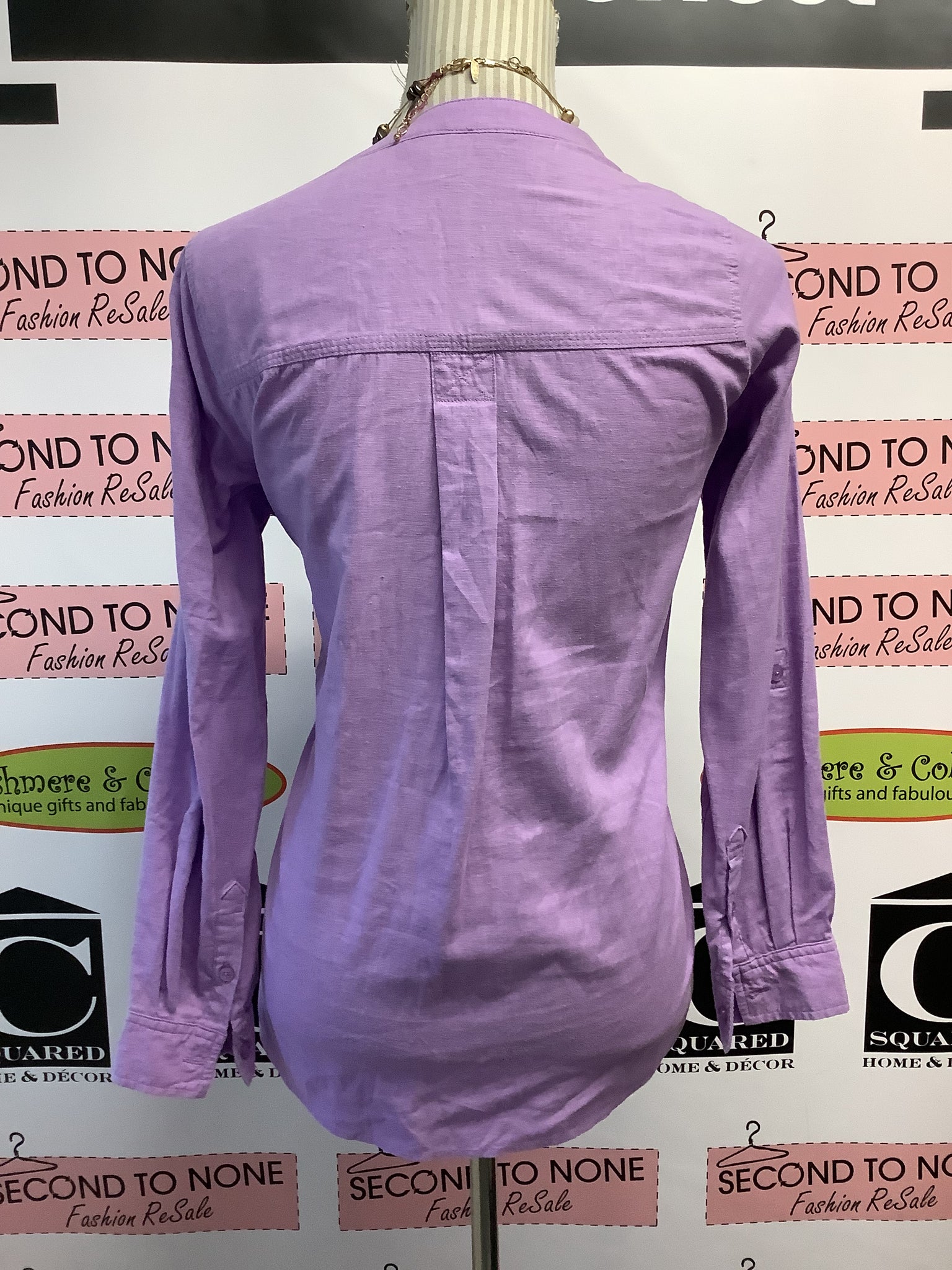 Add a playful pop of color to your spring and summer wardrobe with this soft, light purple Tahari 1/4 button-up. Versatile design lets you roll up the sleeves for a relaxed vibe or keep them down for a polished look. The handy chest pocket adds a touch of casual charm, while the lightweight fabric ensures comfort all day long. Perfect to layer beneath a funky vest, it’s your go-to piece for effortless style and breezy warmth.
