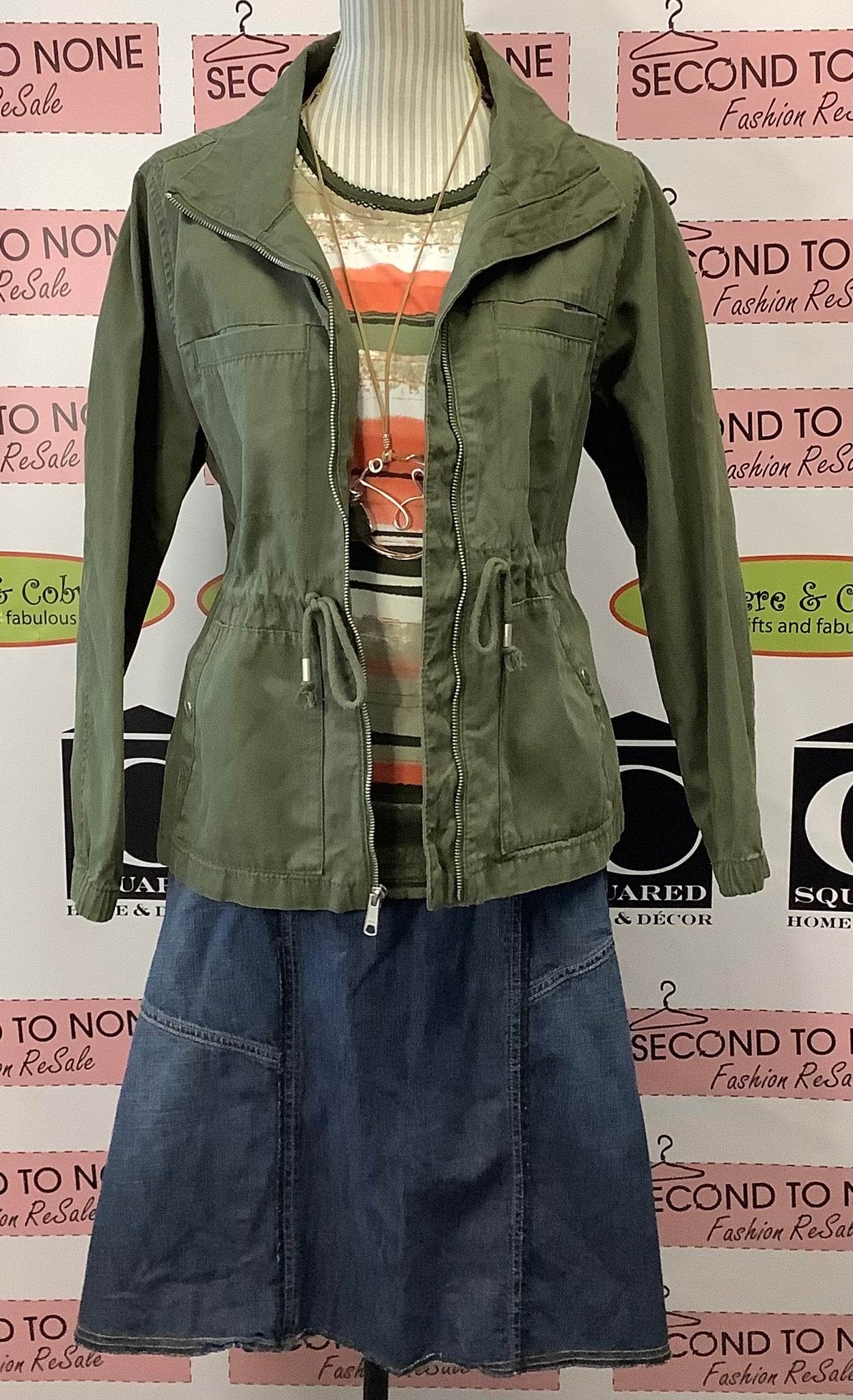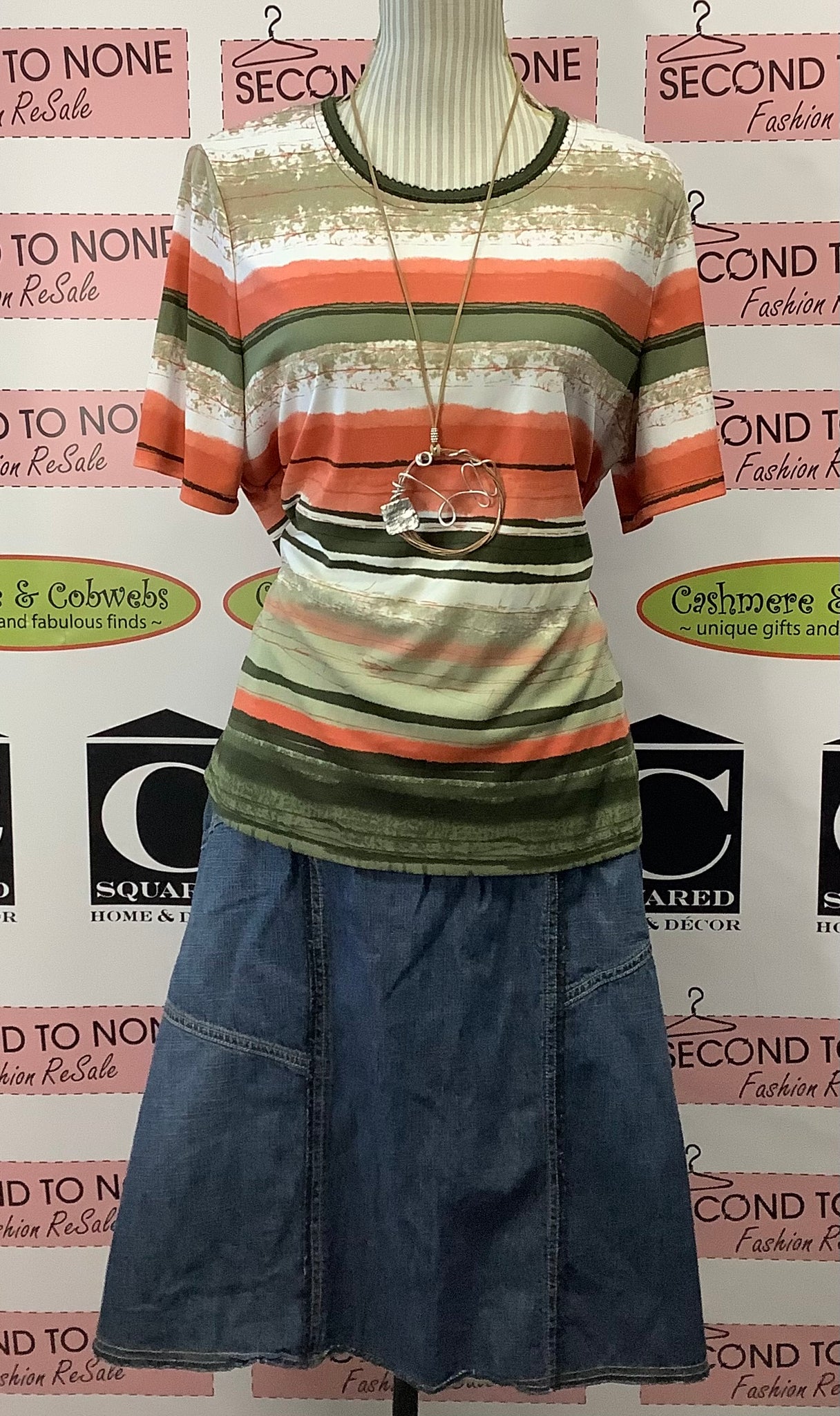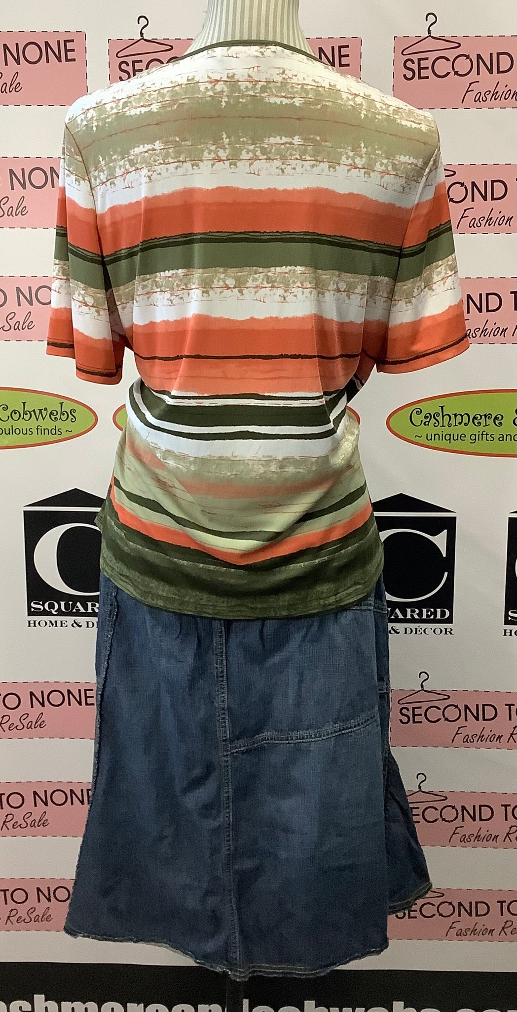 Unleash your wild side with the TanJay Safari Striped Top. Featuring an olive green, white, and salmon striped pattern, this top pairs well with any adventure. The decorative neckline and short sleeves add a touch of style to your look. Don't blend in - stand out in this unique stripe pattern. 100% Polyester.