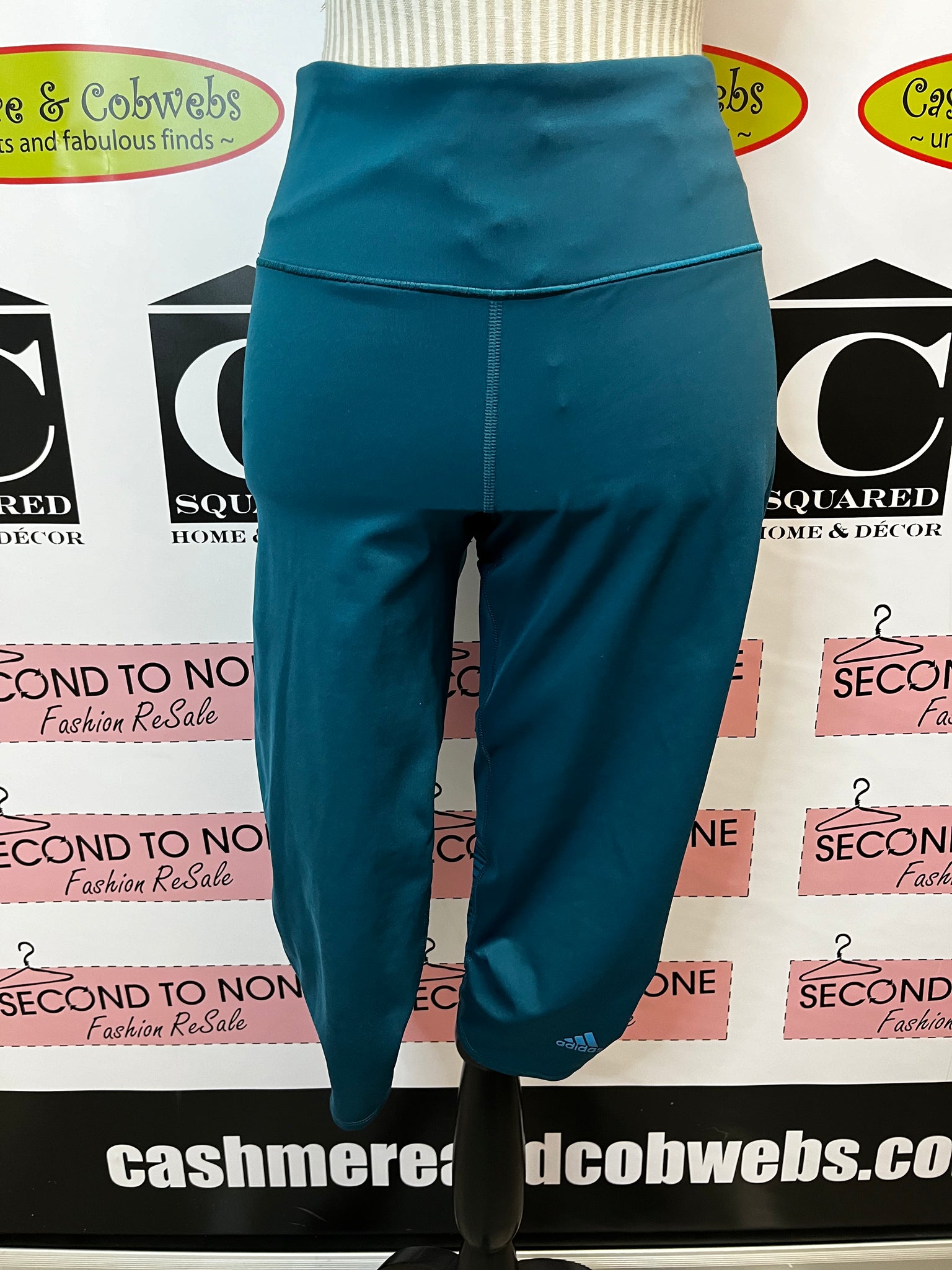 Get ready to add a pop of colour to your workout routine with these Teal Adidas Capris! Made with stretchy and comfortable material, these active capris feature climacool technology to help keep you cool while you're running. Don't forget to pair them with your favourite Adidas gear for the ultimate workout outfit. (Caps "Off" to Adidas!)