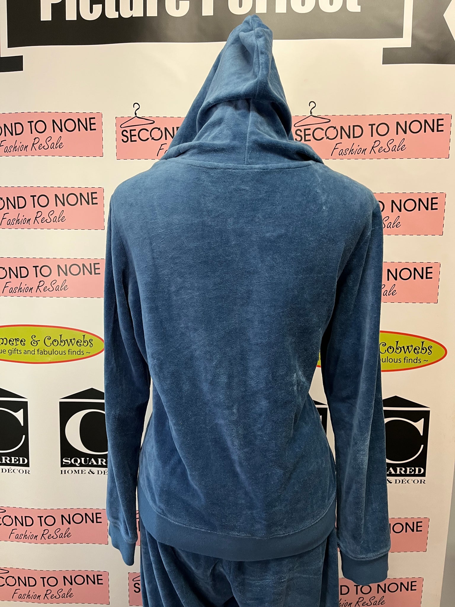 Unleash your inner velour-vixen with this dark teal track suit from DKR & Company. Zip up the hooded sweater and adjust the drawstring waist pants for a perfect fit. With this comfortable and stylish ensemble, you'll be ready to conquer any day with ease.
