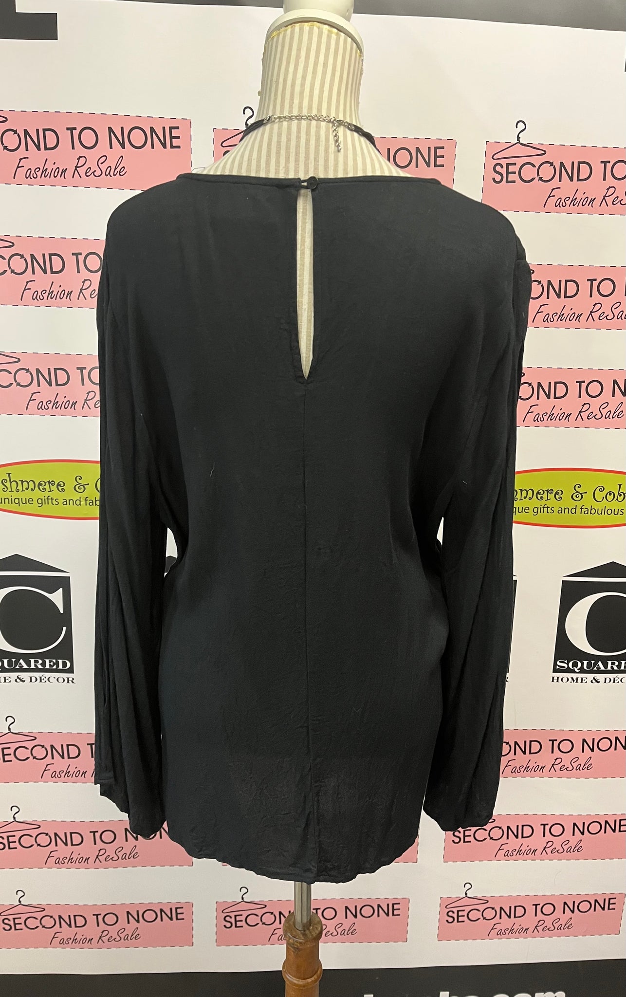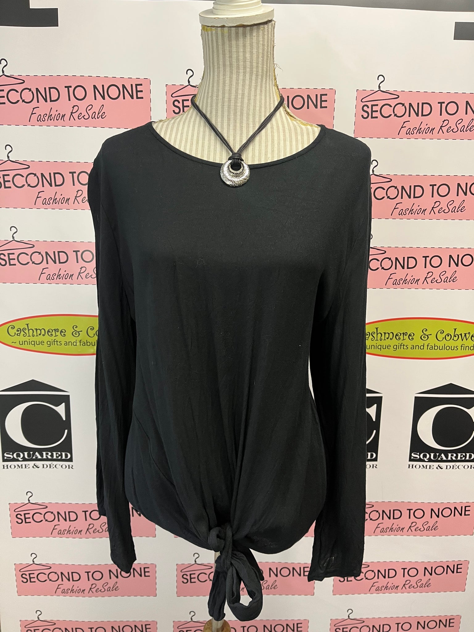 This black tie front open sleeve top from Ava & Viv is the perfect addition to your wardrobe. The lightweight fabric and keyhole back add a touch of flow to any outfit, while the tie front detail adds a stylish touch. Available in size XL.