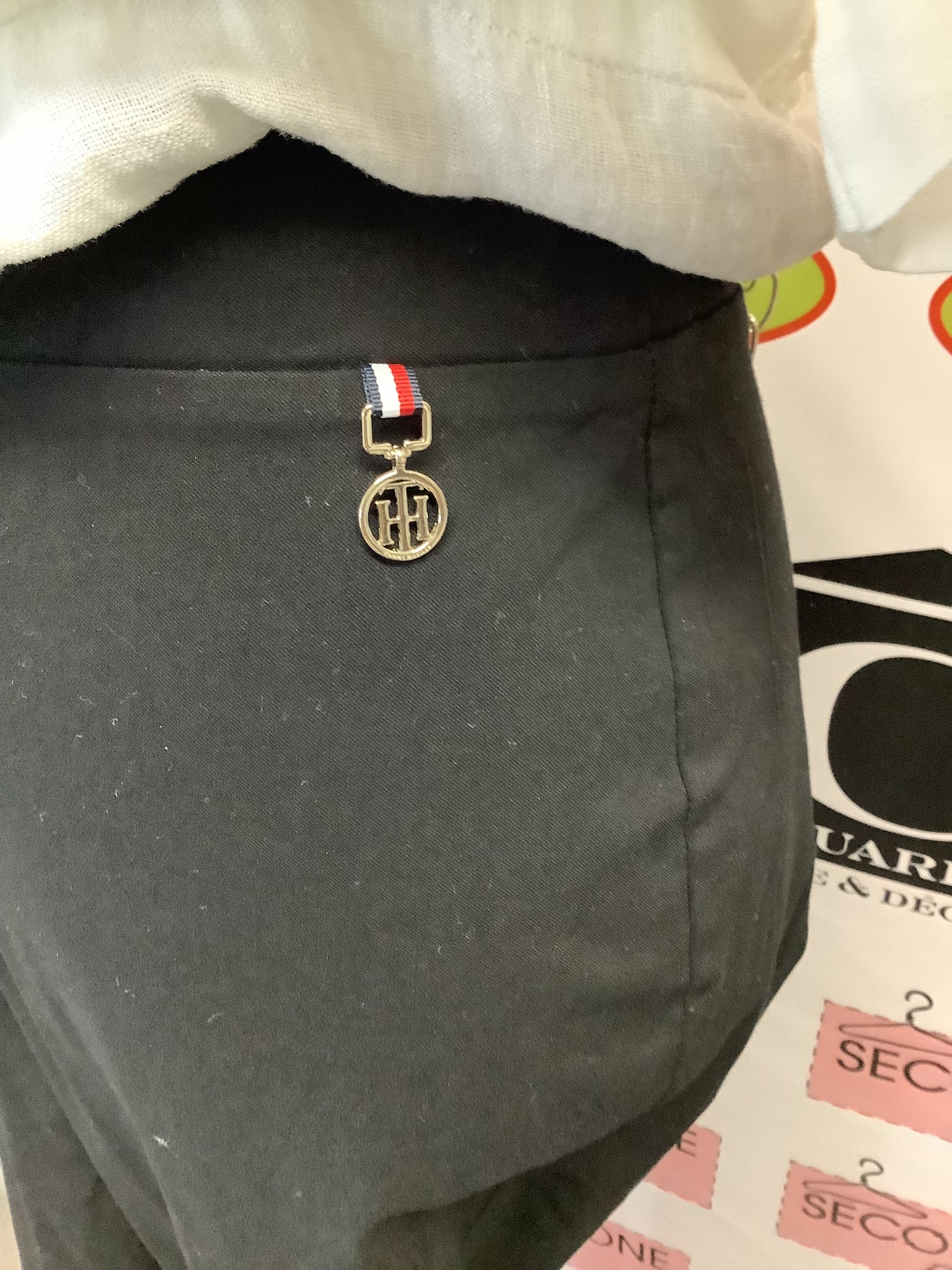 These Tommy Hilfiger Essential Stretch Pants in size 14 are the perfect blend of cute and classic. Featuring a stretchy, elastic waistband and a sleek straight leg, they offer comfort and style all day long. The timeless black color pairs effortlessly with any cute blouse, while the iconic golden logo adds a touch of chic flair. Originally priced over $80, this versatile find is a must-have for your wardrobe!