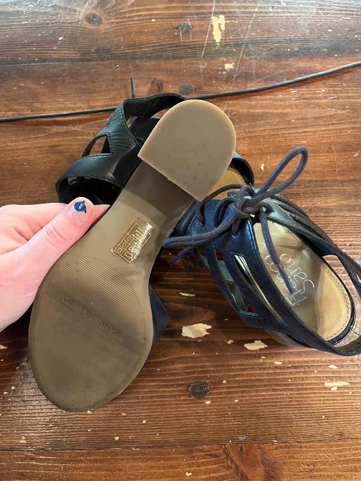 Franco Sarto Black Leather Cut Out Sandals (Size 7.5)