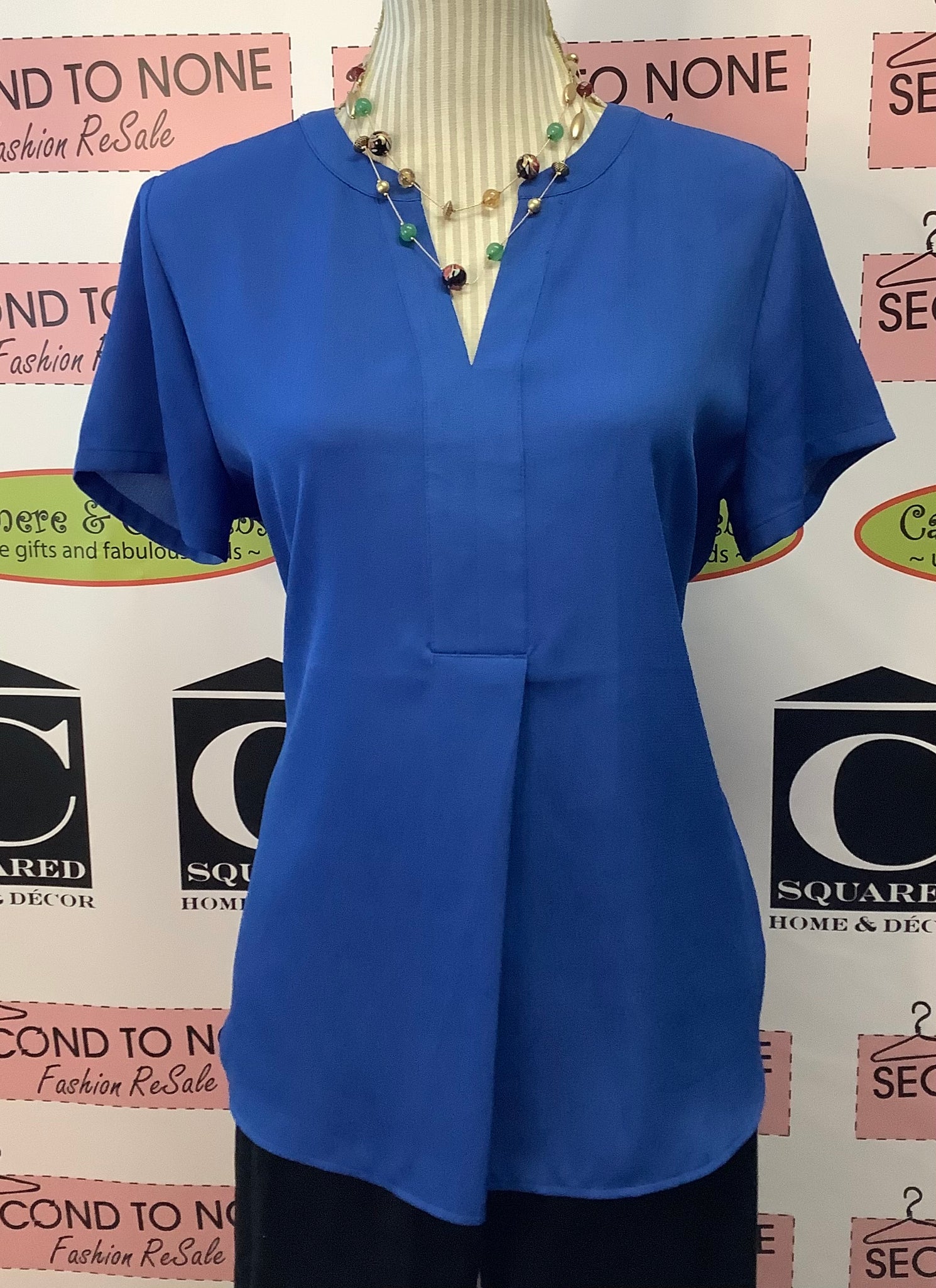 The Van Heusen Royally Pleated Top boasts short sleeves and a lightweight design for comfort. A v-neck, box cut, and rounded hemline complete the polished look. Perfect for any occasion, this top offers a flattering and stylish addition to your wardrobe.
