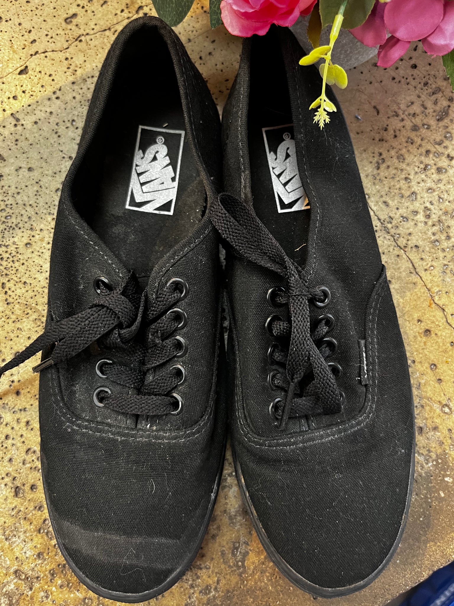 Lace up in some classic black style with these authentic Vans sneakers. With a sleek black design and the iconic tag and heel logo, you'll look like you've never even worn them before. Perfect for women size 8 or men size 6.5. Get your kicks in style!