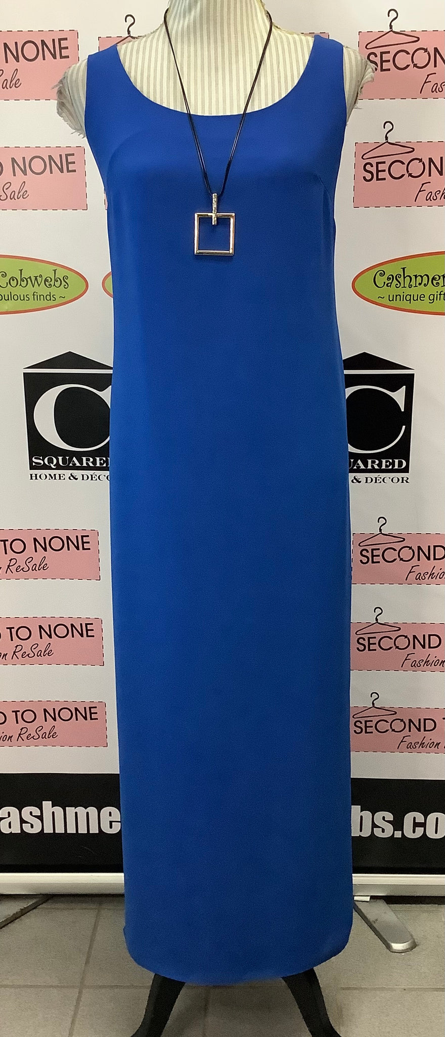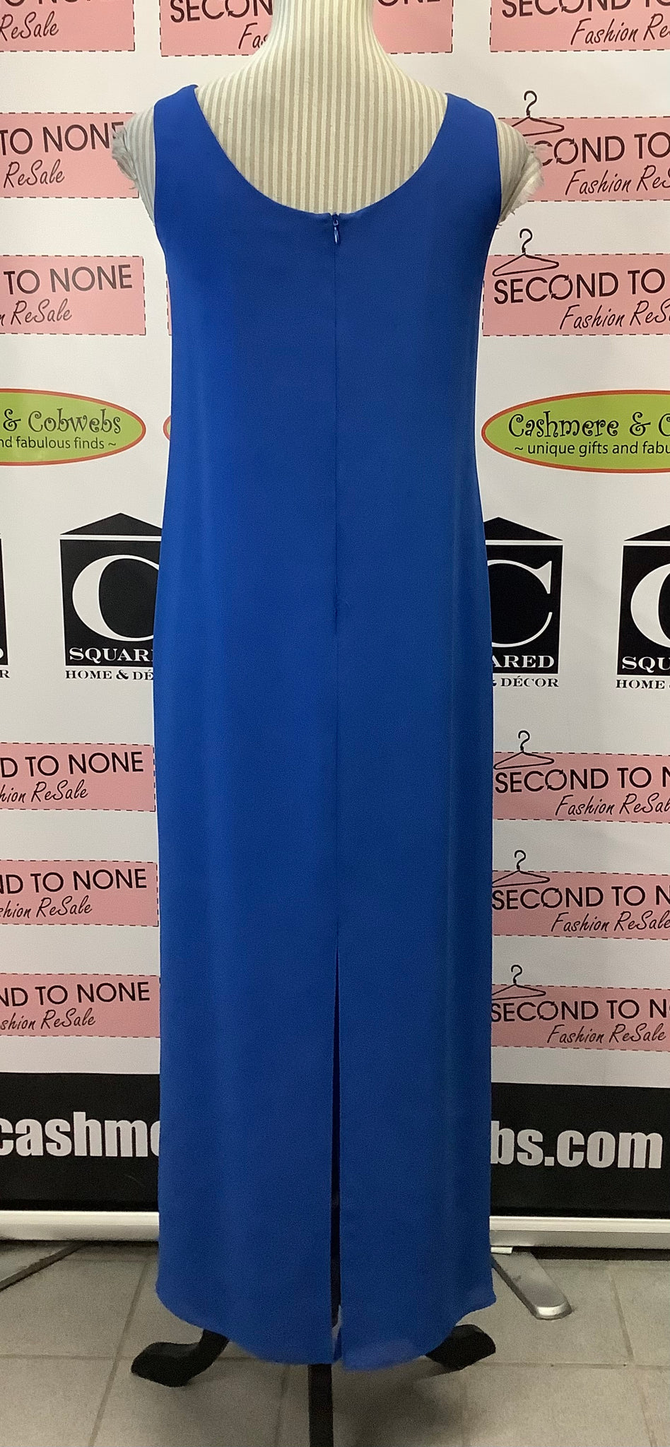 Elevate your wardrobe with this vintage royal blue gown and jacket set from Ursula Of Switzerland. The full length dress features a sheer overlay, rounded neckline, and rear slit for a touch of elegance. Complete the look with the matching sheer jacket, complete with extended layer hemline and single hook and eye closure. Made in U.S.A. 100% Polyester.