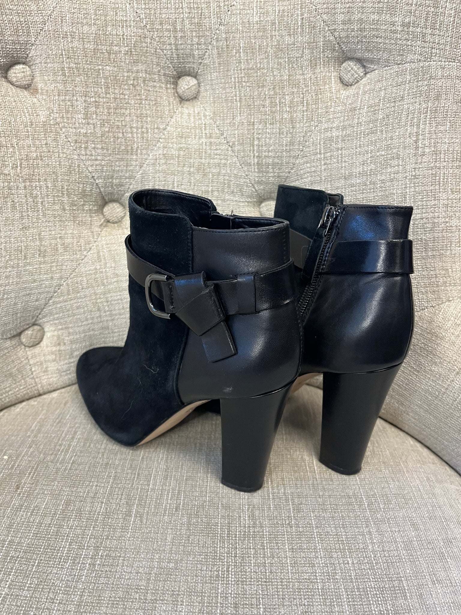 Elevate your style with effortless sophistication in our White House | Black Market Buckle Booties. Crafted from luxurious faux suede, these heeled booties feature elegant Fooler buckle details and an interior zipper for easy wearing. Perfect for adding a touch of exclusive, high-end fashion to any outfit.