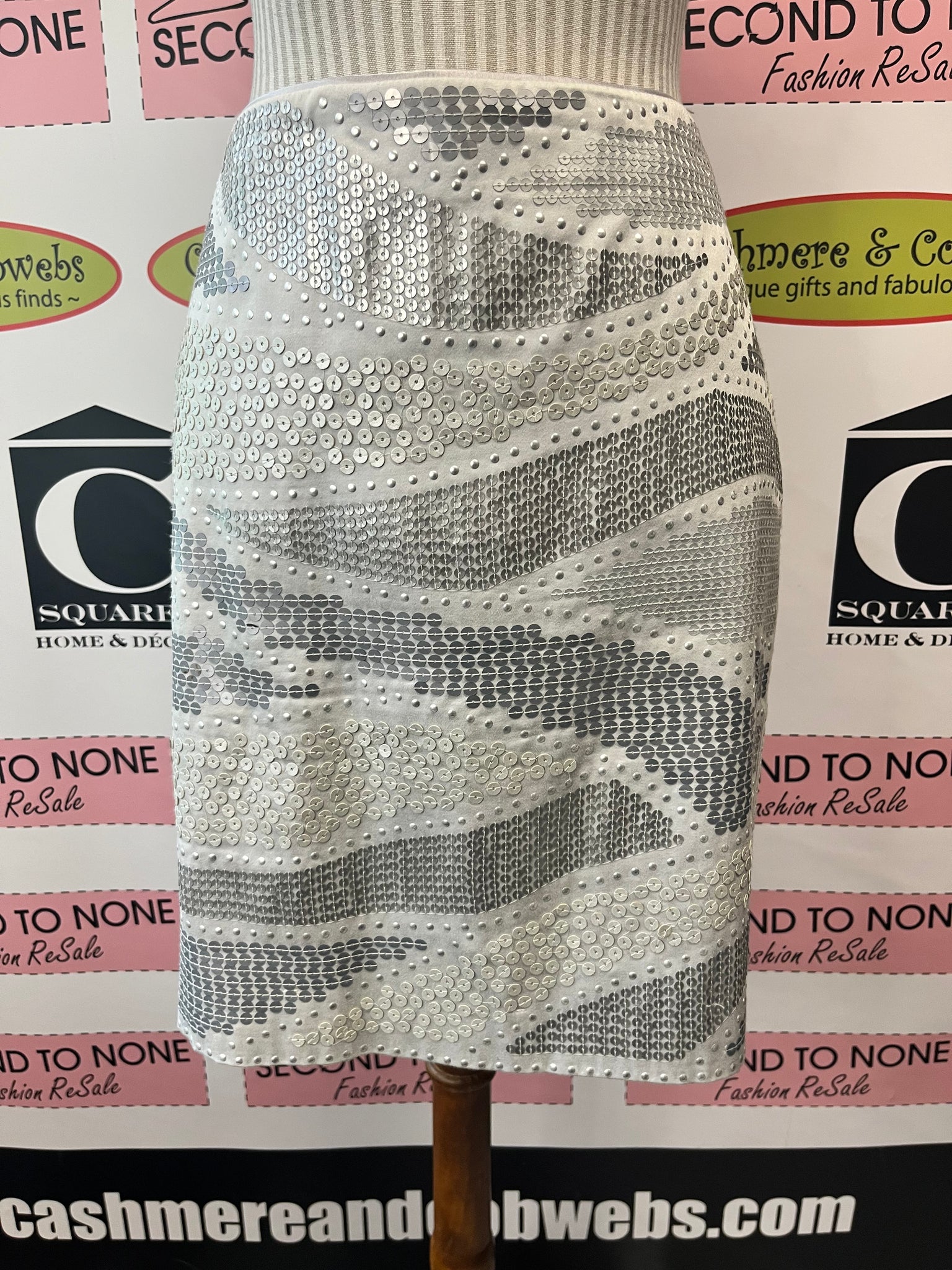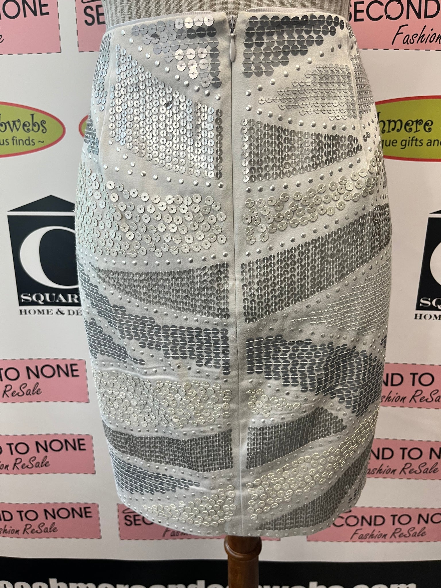This playful light grey skirt dazzles with silver sequins and studs arranged in a chic zig-zag pattern. Fully lined for comfort and featuring a fitted, shorter cut, it’s designed to hug your curves perfectly. The back zipper makes slipping it on a breeze. Perfect for dinners or fancy occasions when you want to sparkle with a subtle edge.